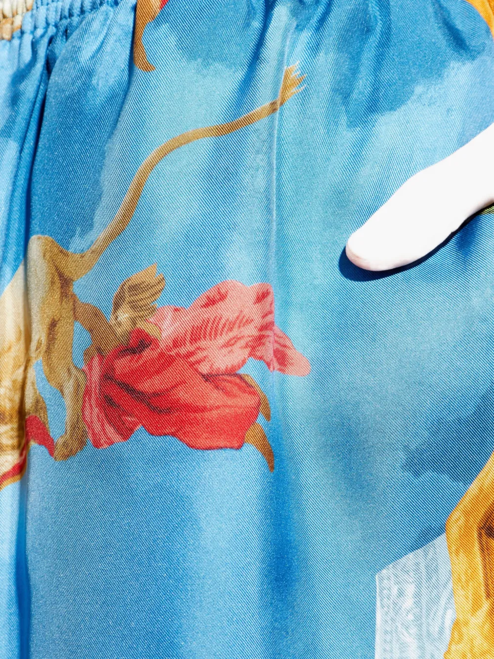 светло-голубые/многоцветные шелковые шорты с принтом Gallery по всей поверхности и эластичным поясом