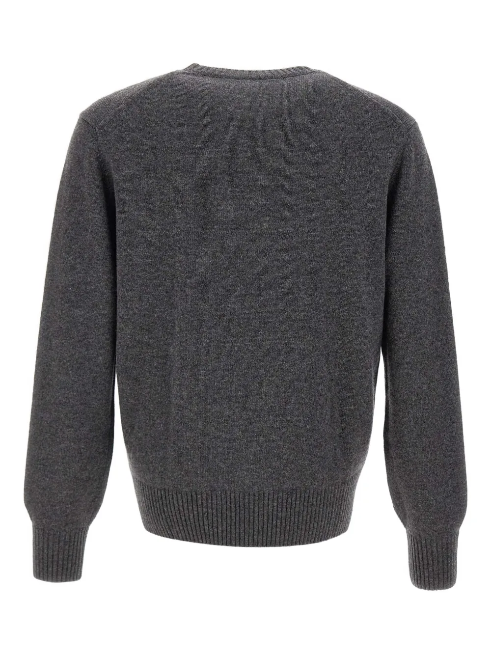 серый свитер из шерсти с вышитым логотипом, длинными рукавами, ребристыми манжетами и круглым вырезом