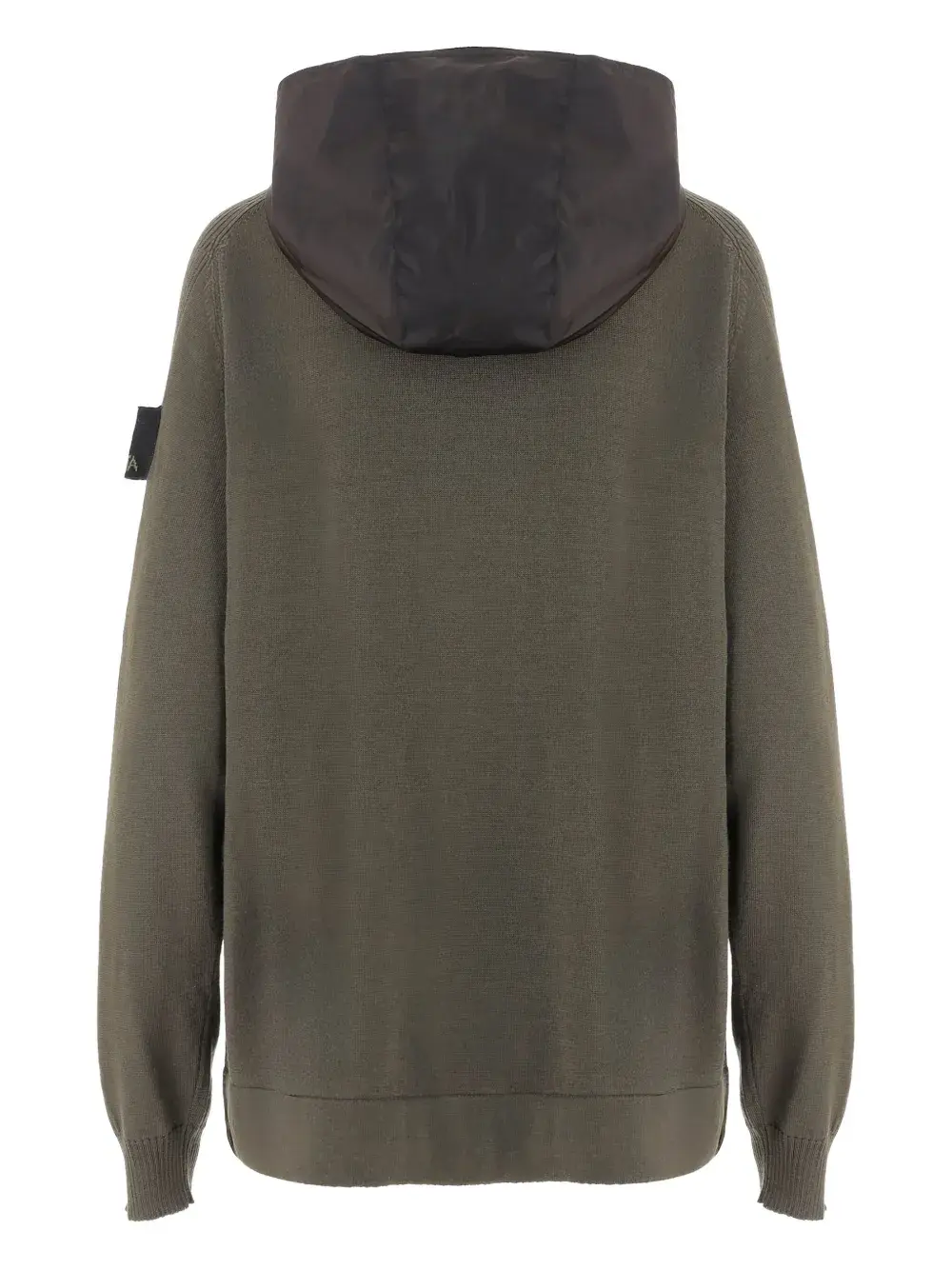 зелёная толстовка с капюшоном, застёжкой-молнией спереди, длинными рукавами, ребристыми манжетами, двумя боковыми карманами и нашивкой с логотипом
