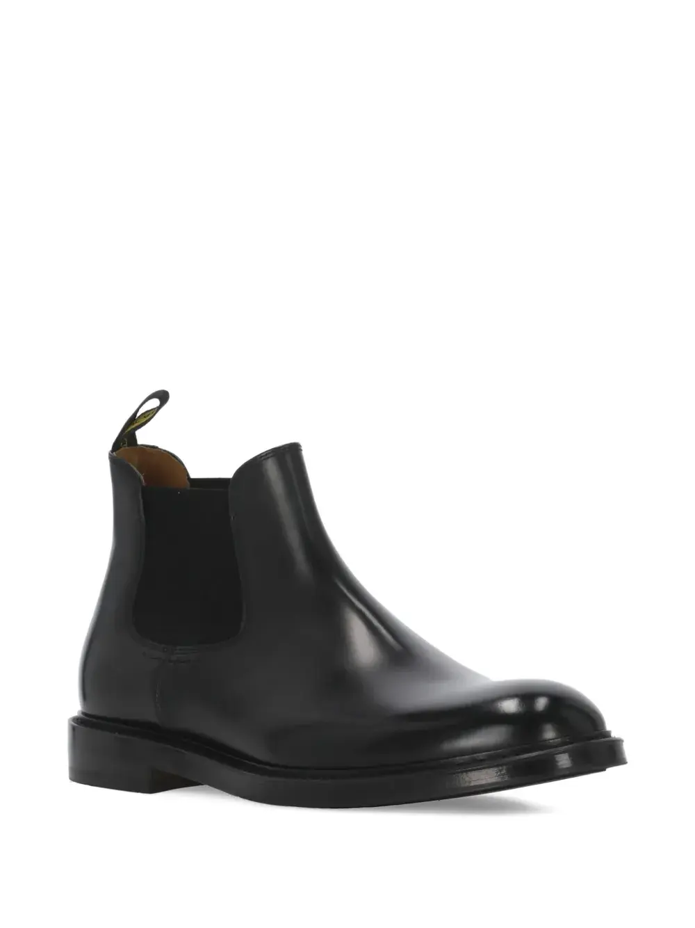 черные эластичные боковые вставки, петля для натягивания на верхней части, верх из телячьей кожи, каблук-«блочник», плоская подошва