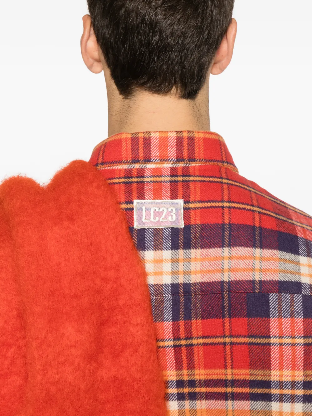 оранжевая и разноцветная рубашка в клетку с нагрудным карманом, застёжкой на пуговицы, длинными рукавами и манжетами на пуговицах
