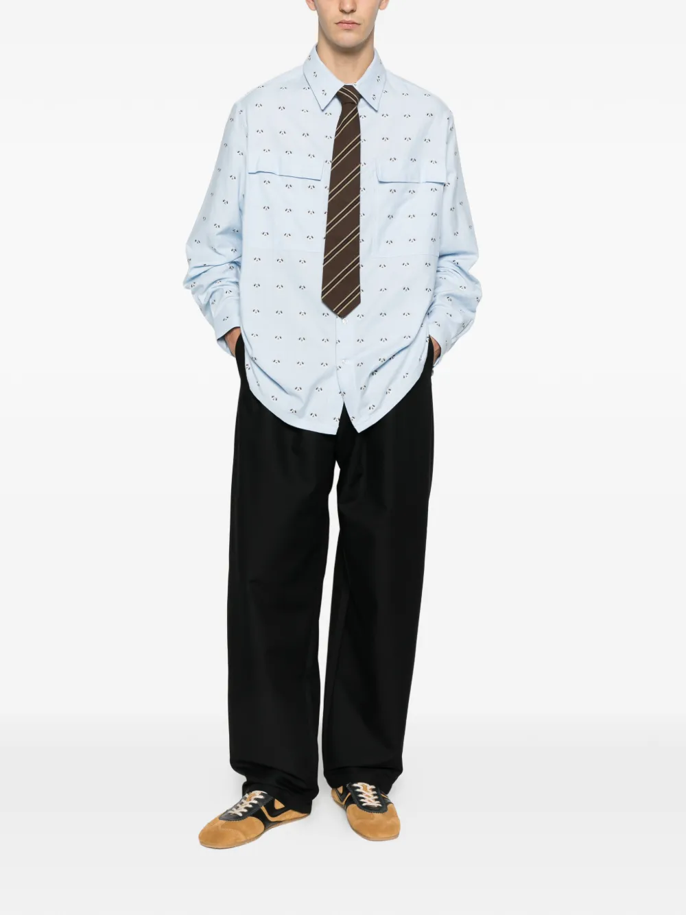бледно-голубой с узором, нагрудные карманы, застежка на пуговицы, длинные рукава, манжеты на пуговицах
