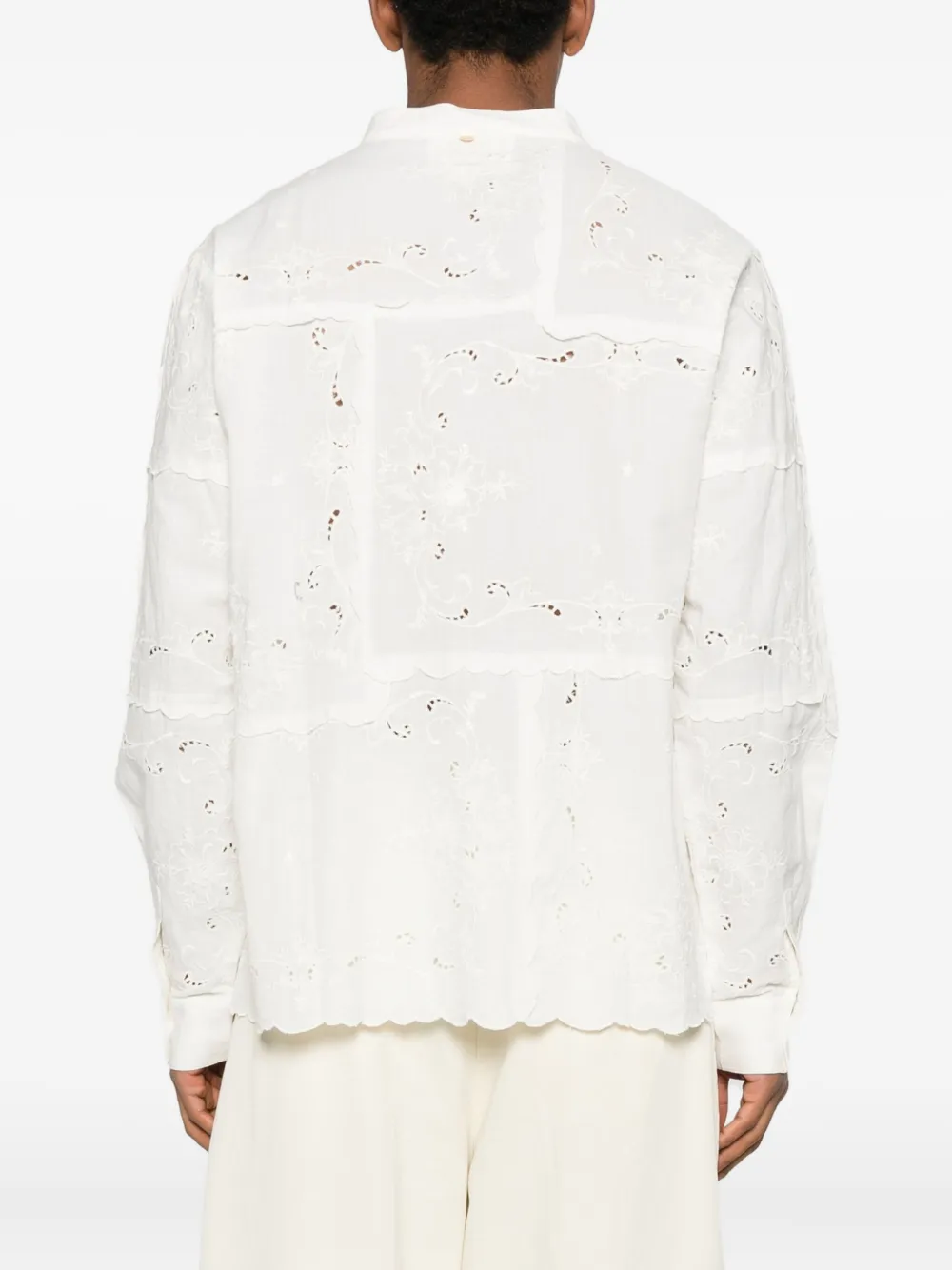 нейтральные оттенки, английская вышивка, застежка на пуговицы, длинные рукава, без воротника