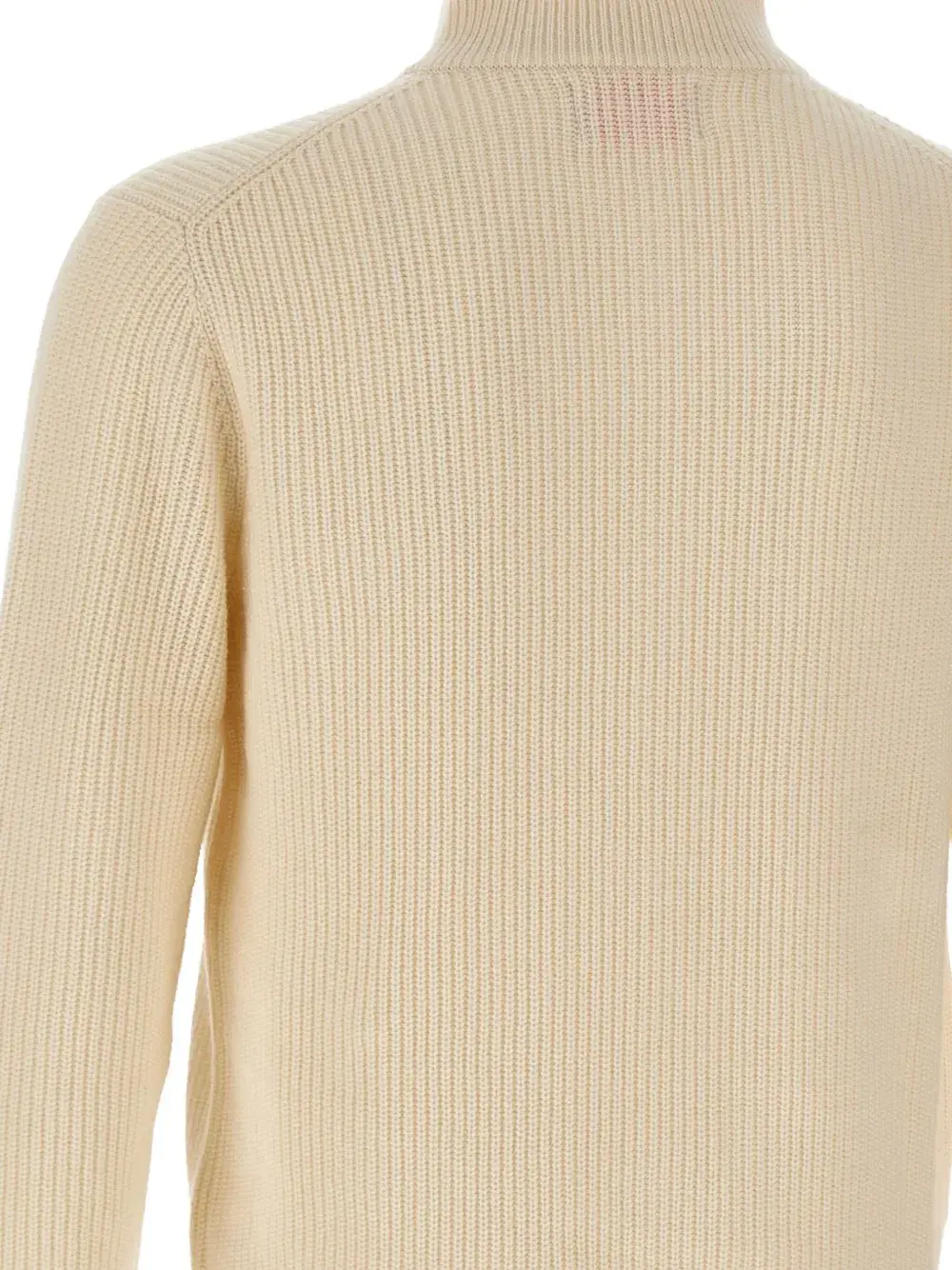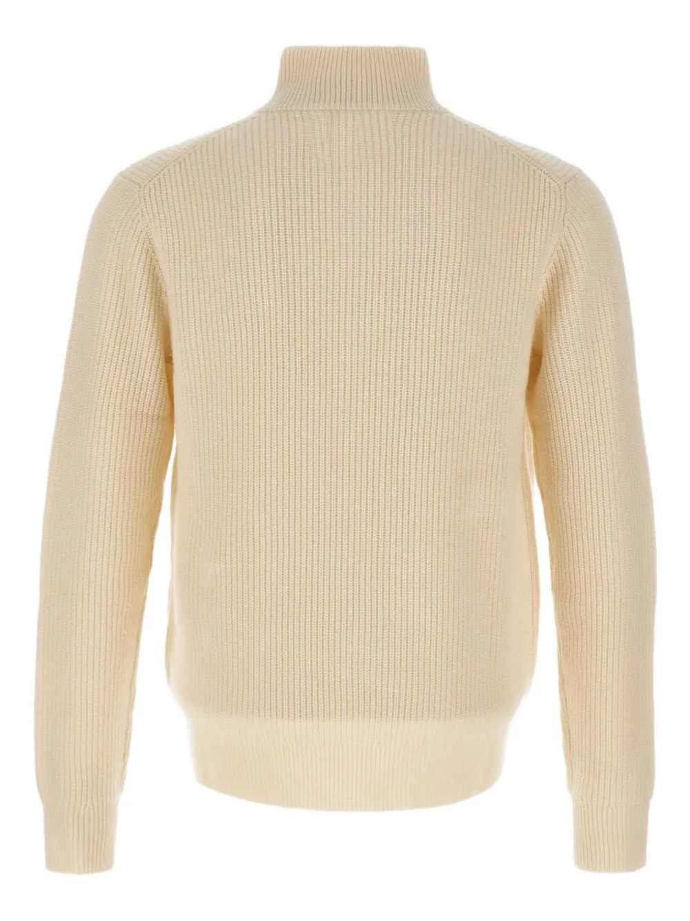 белый в рубчик, вязаный, высокий воротник, длинные рукава, застежка-молния, вышитый логотип