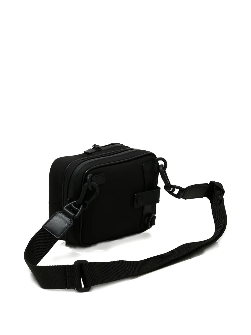 черная с логотипом, регулируемый ремень, кожаная ручка, двухсторонняя молния