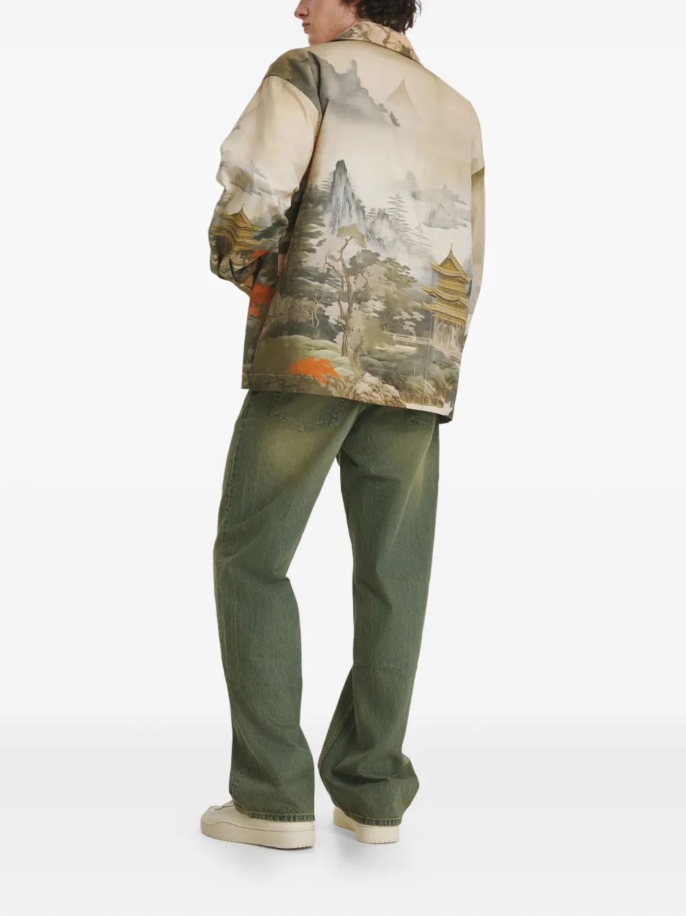 хаки с графическим принтом, застёжка на пуговицы, длинные рукава, манжеты на пуговицах