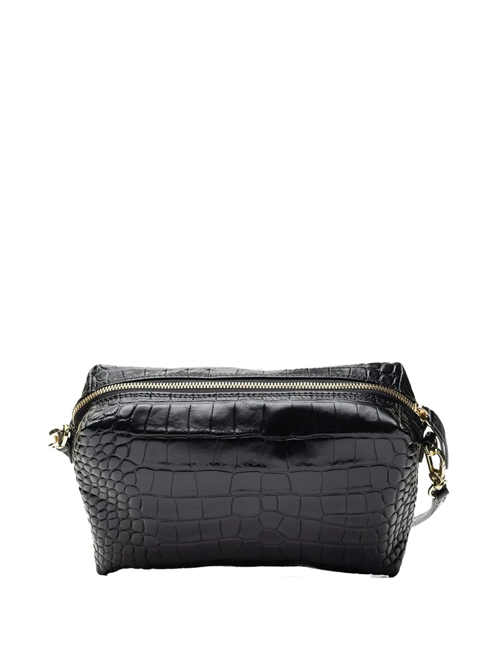 черный ремень на плечо с тиснением под крокодила и застежкой-молнией