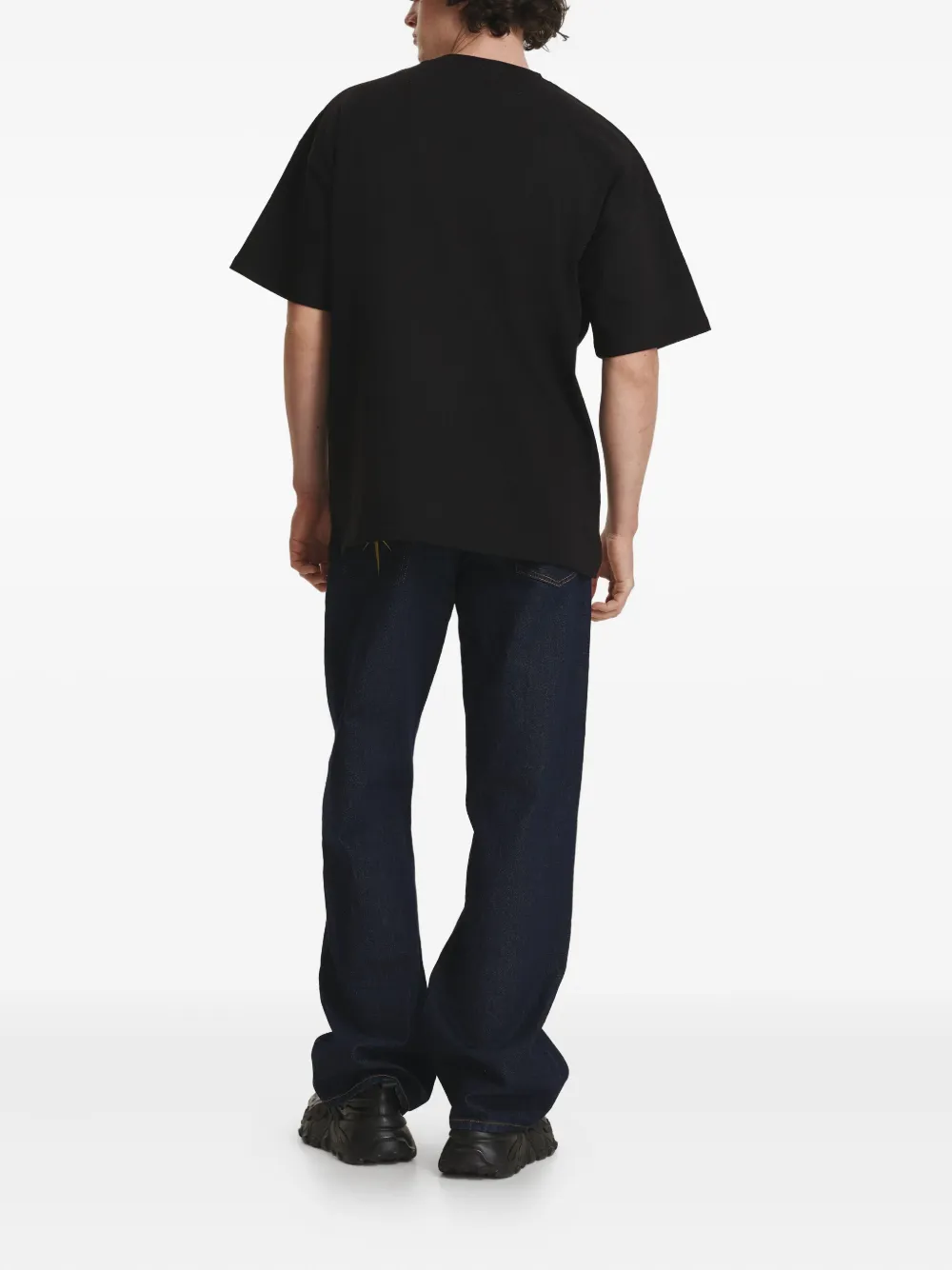 чёрная футболка с вышитыми звёздами, круглый вырез, короткие рукава