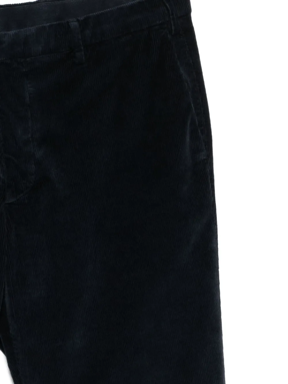 синий вельвет с текстурой, застежка на пуговицы, шлевки для ремня, боковые карманы в шве, задние прорезные карманы