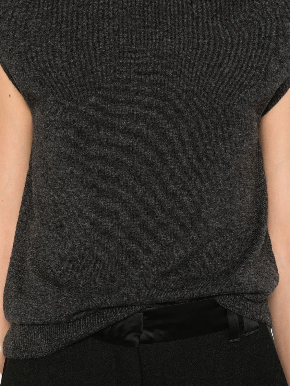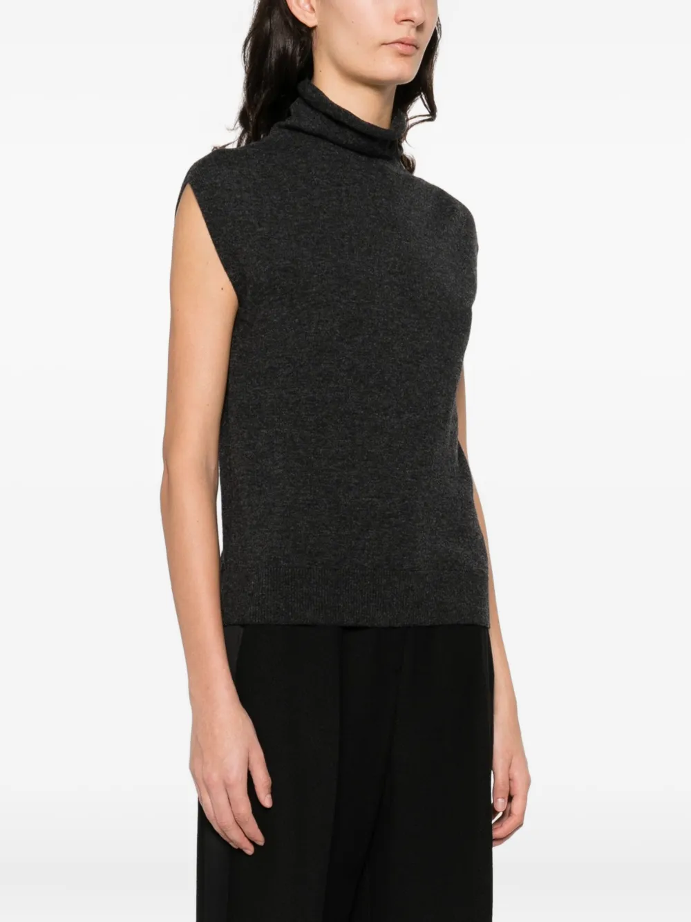 серый безрукавный свитер с высоким воротом