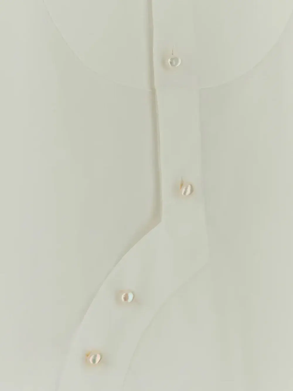 белый цвет, застежка на пуговицы, манжеты на пуговицах, кокетка на спине, асимметричный дизайн