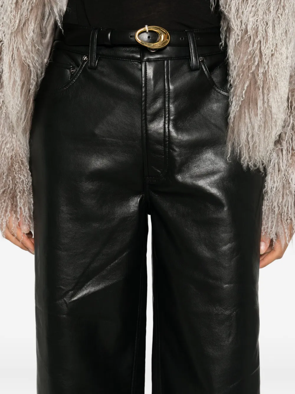 чёрная эластичная талия, застёжка на пуговицу, шлёвки для ремня