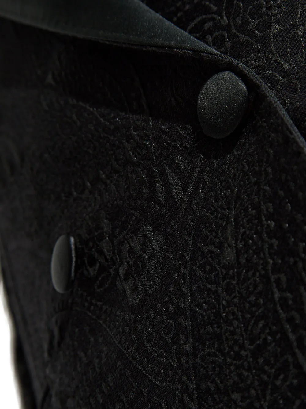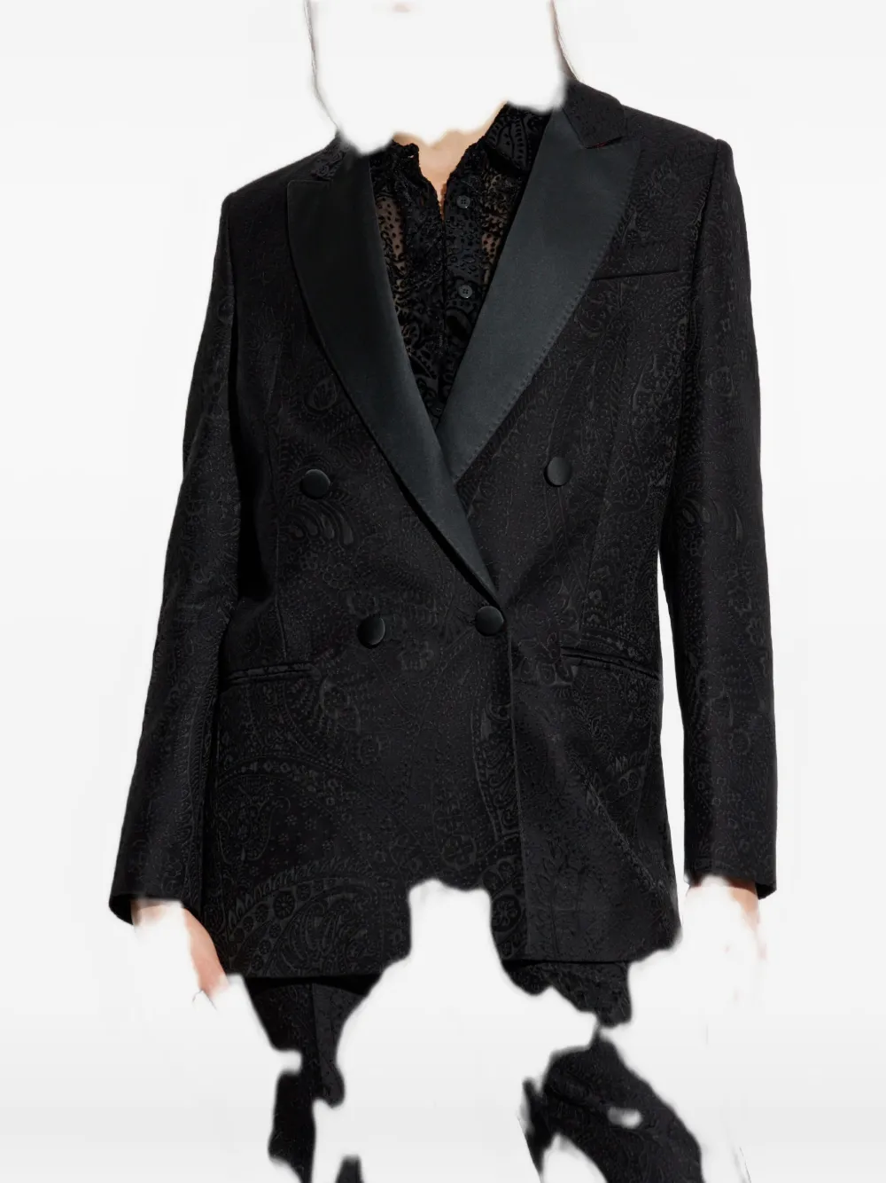 черный двубортный пиджак с узором "пейсли", застежкой на пуговицы, шалевыми лацканами и клапанами на карманах