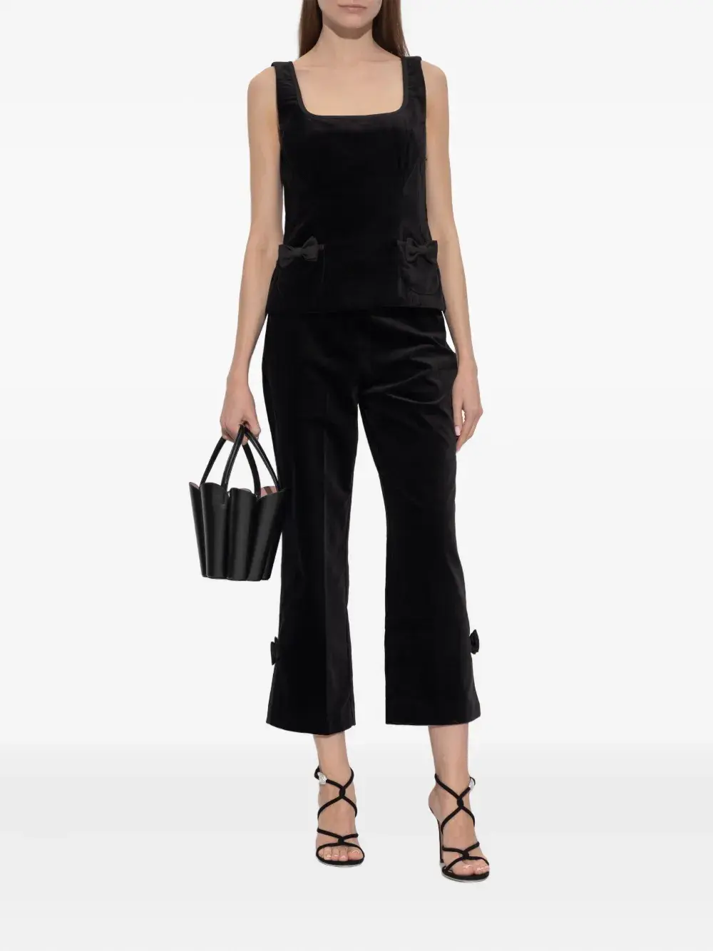 черная хлопковая модель с бантом и разрезами по бокам