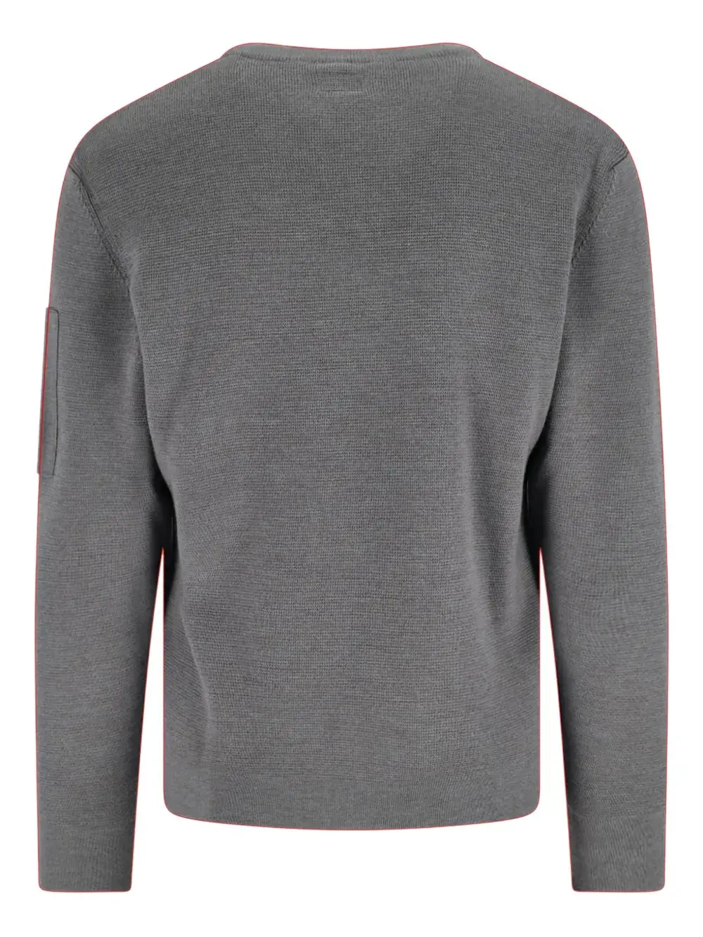 Серая вязаная фактура, круглый вырез, длинные рукава, карман на рукаве, деталь с молнией, C,P, Company рекомендует снимать все съемные аксессуары перед стиркой