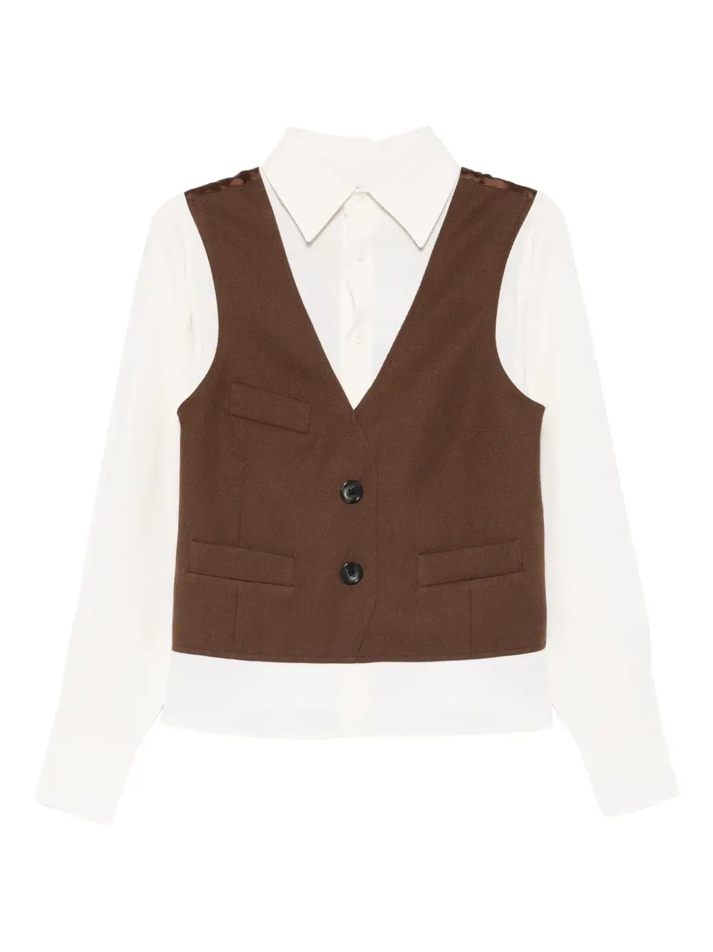 коричнево-кремовая рубашка с застежкой на пуговицы спереди и воротником на пуантах