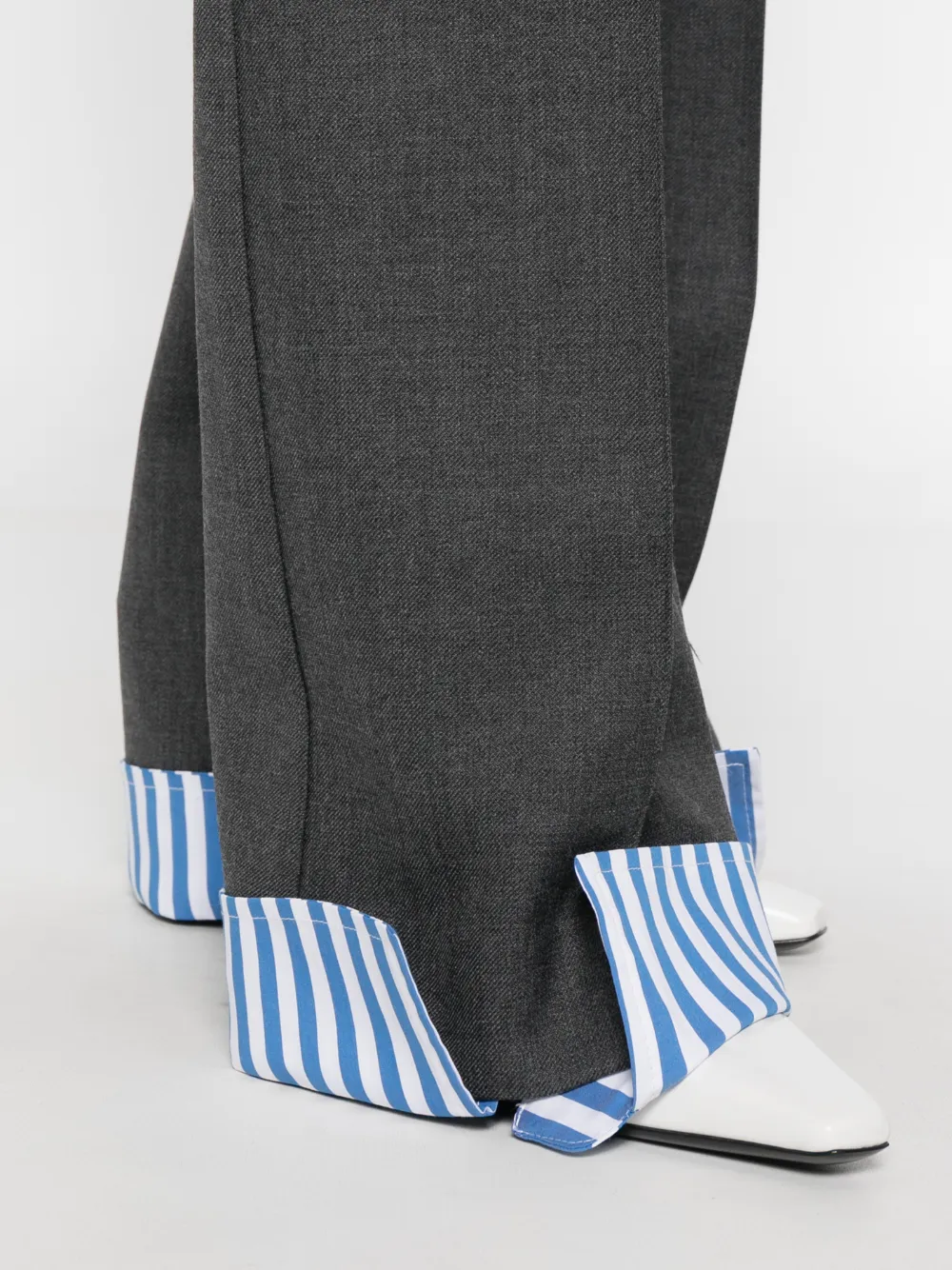 серый с полосатым поясом и полосатым подолом