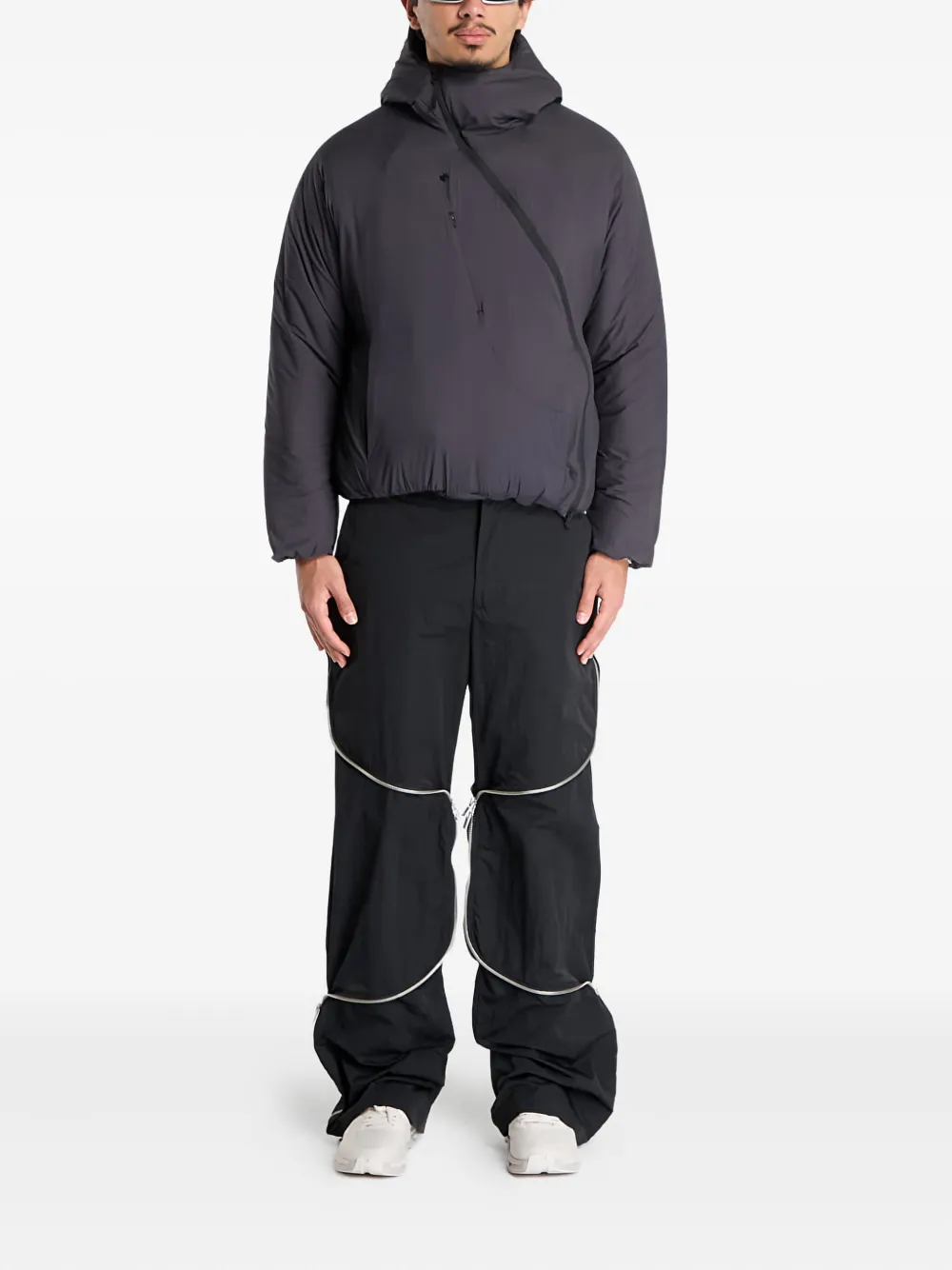 черный капюшон с молнией и эластичным подолом