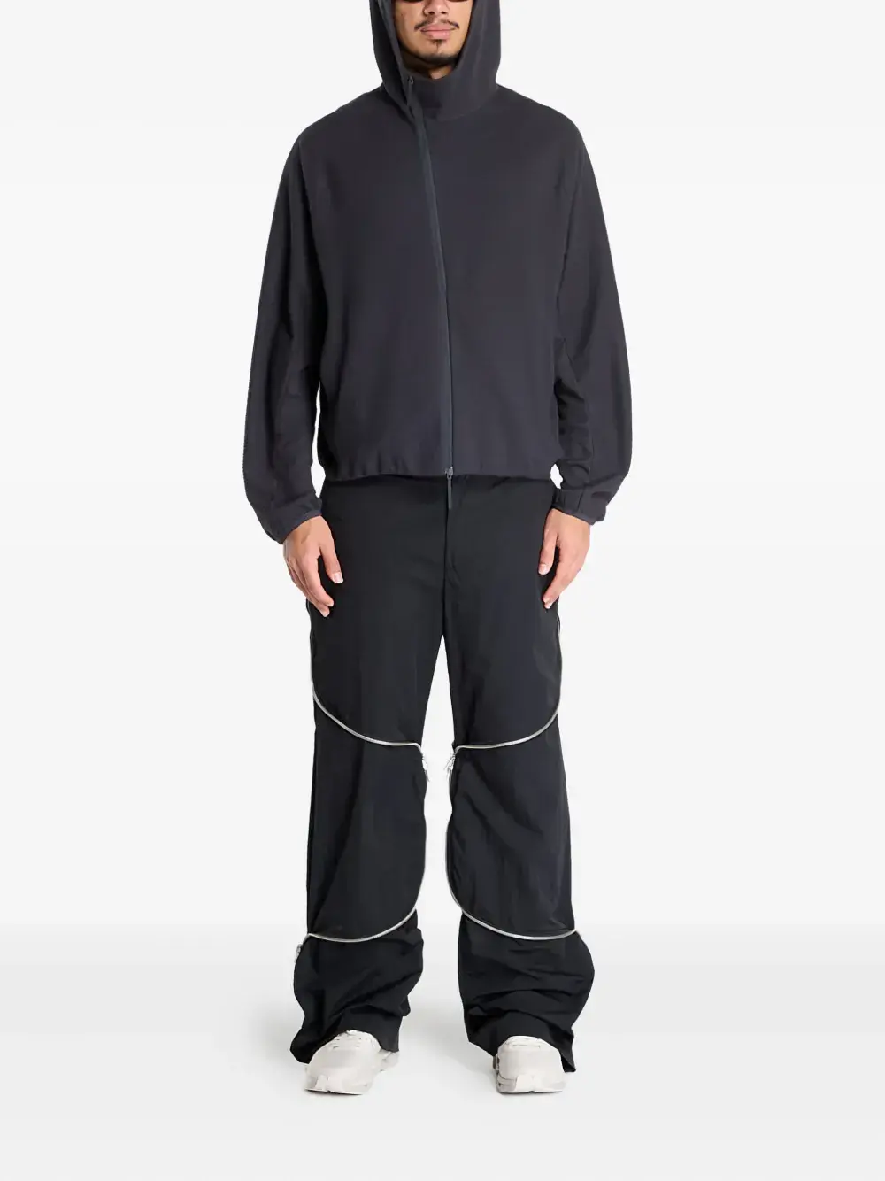 серый худи на молнии с капюшоном, длинными рукавами и эластичным низом