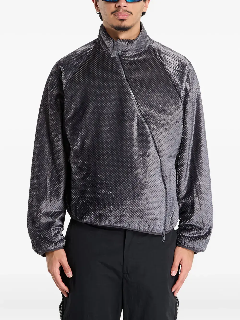 черная асимметричная молния, высокий воротник, длинные рукава, эластичный низ