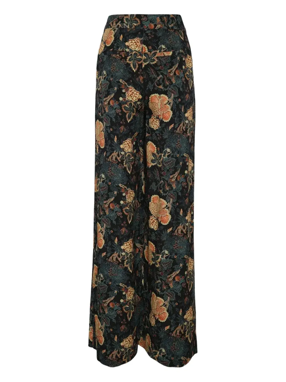 синие и разноцветные широкие брюки с цветочным принтом и завышенной талией