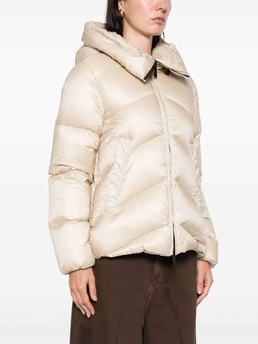 бежевый, капюшон, застежка-молния, передние карманы, стеганый