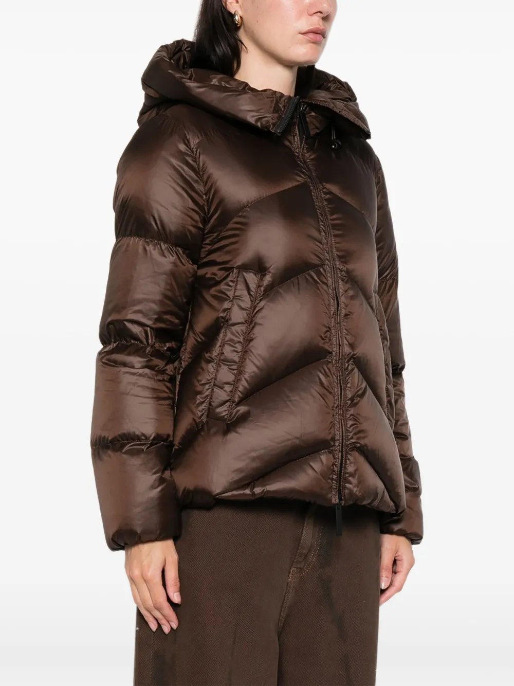 шоколадно-коричневая стеганая модель на молнии с капюшоном