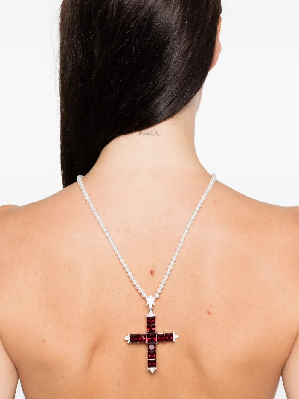 Жемчужное ожерелье с кулоном в виде креста Darkai, белый