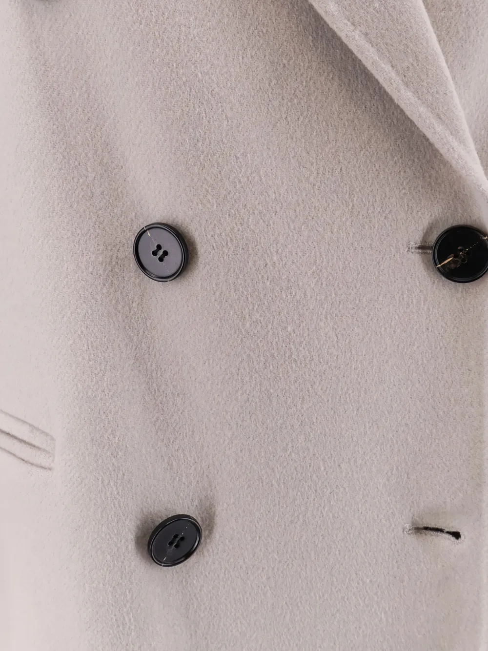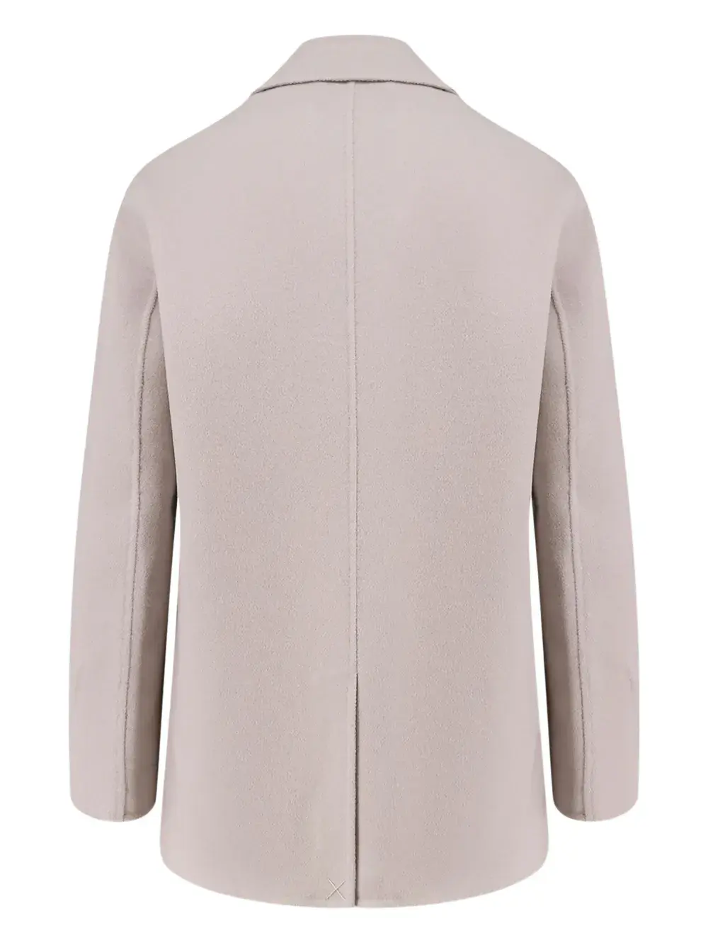 светло-серый двубортный, застёжка на пуговицы, передние карманы, задняя шлица