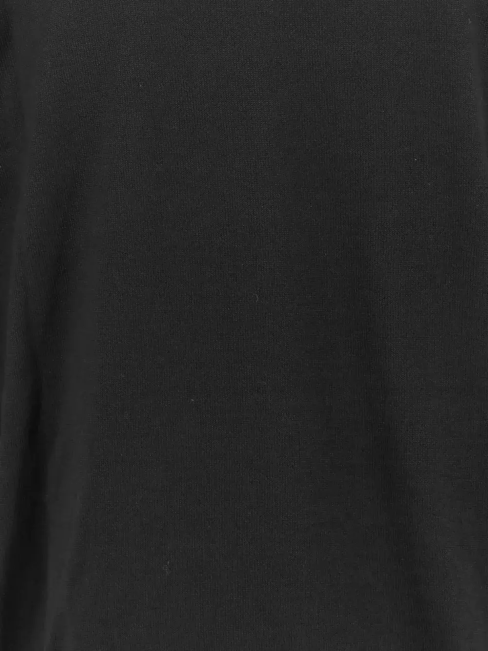 черный свитер с ребристыми манжетами, круглым вырезом и длинными рукавами