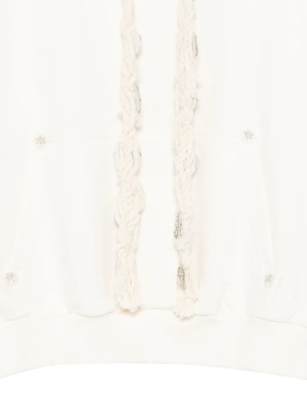 айвори, украшенные детали, плетёная кулиска на капюшоне, длинные рукава, передний карман-кенгуру