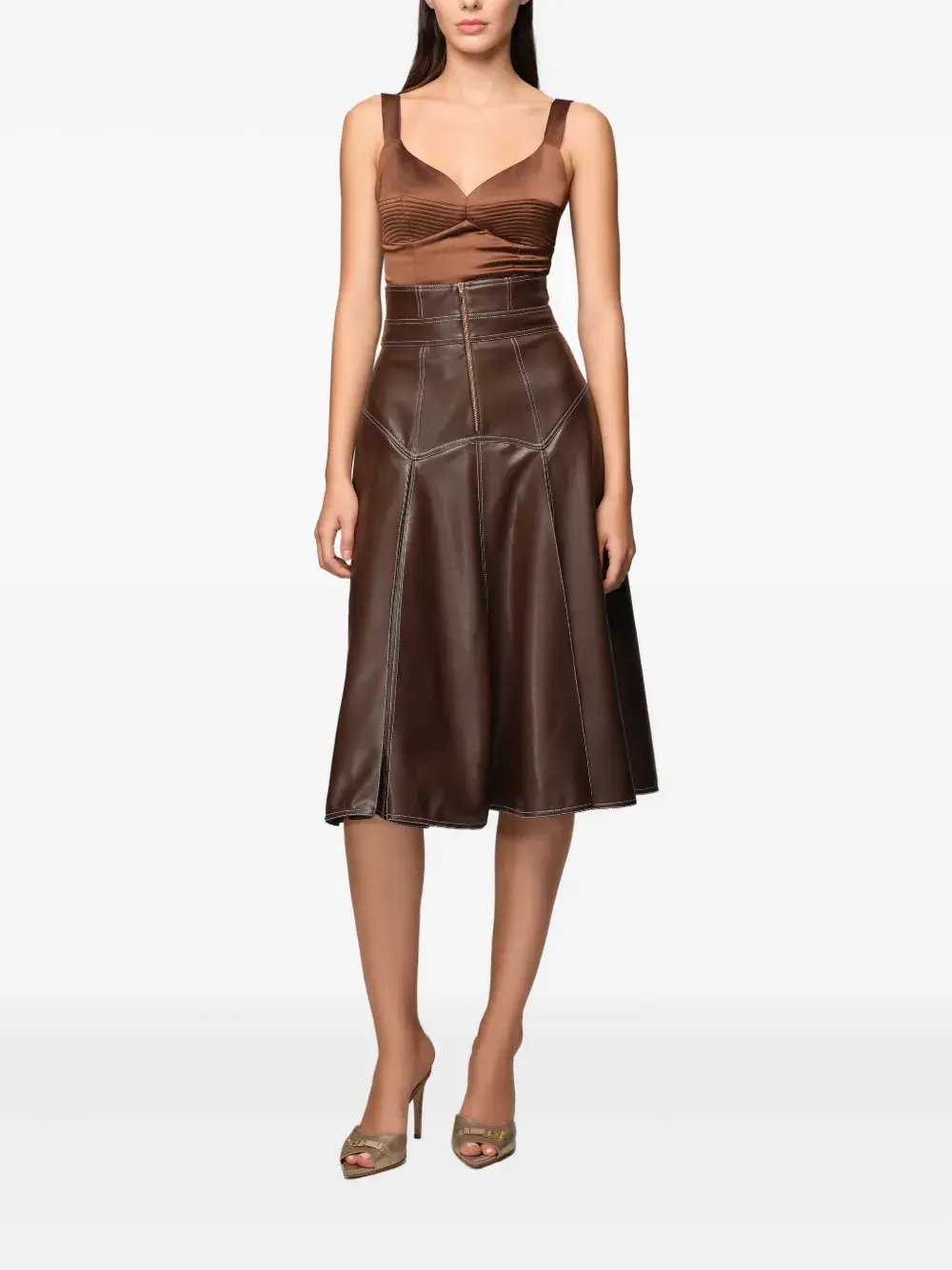 коричневые плечевые лямки, V-образный вырез, застёжка-молния, отделка швами