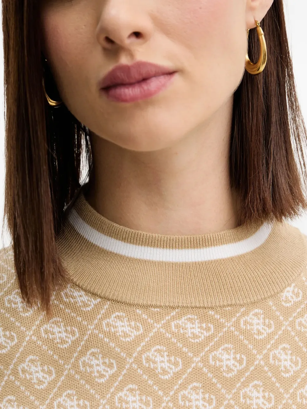 бежевый с узором, длинные рукава, круглый вырез, манжеты и низ в рубчик