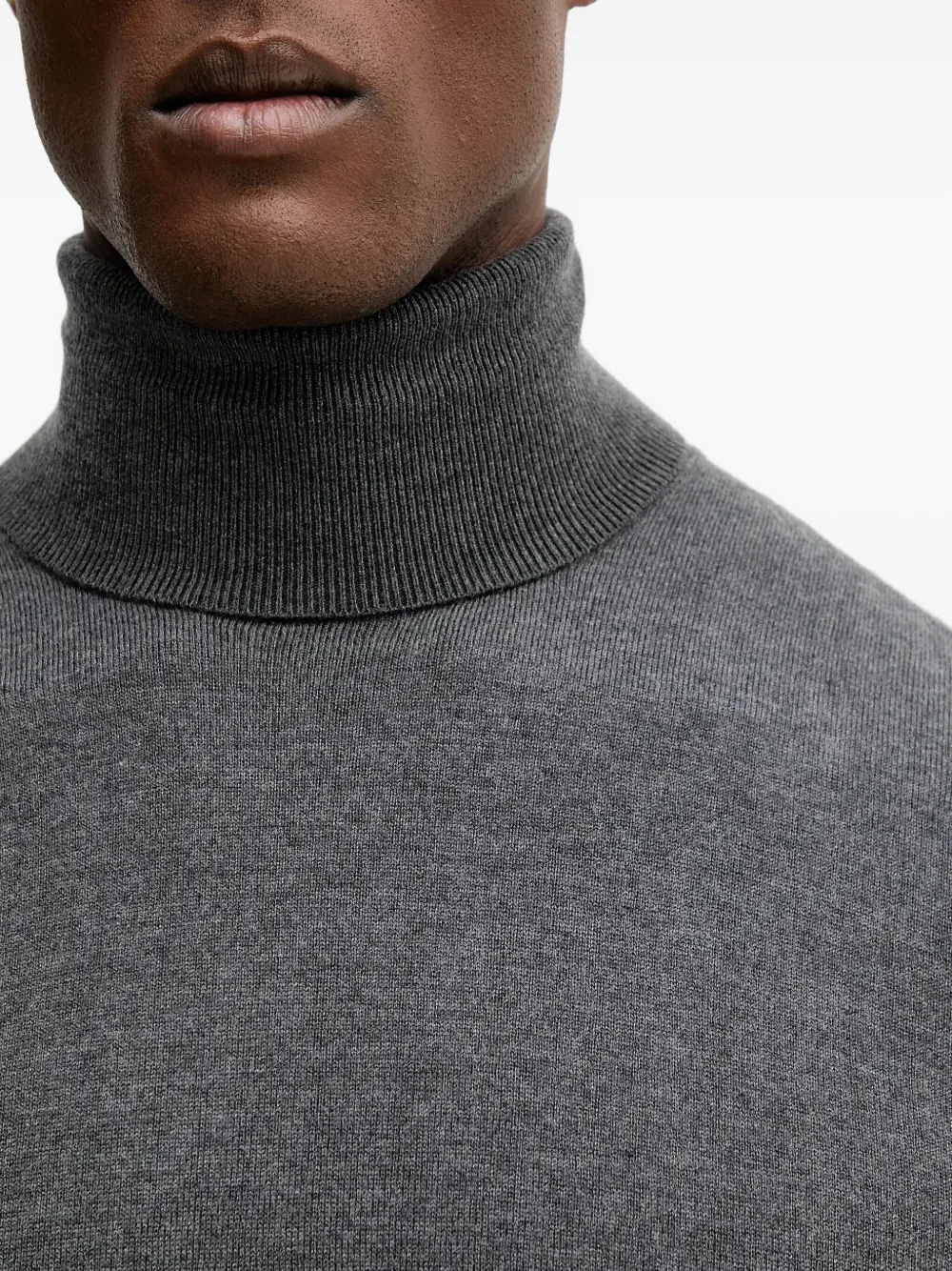 Серый вязаный гольф с длинными рукавами и рубчатой текстурой
