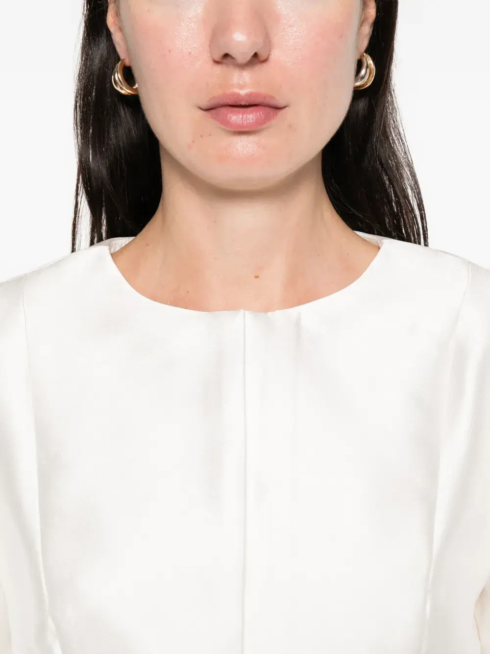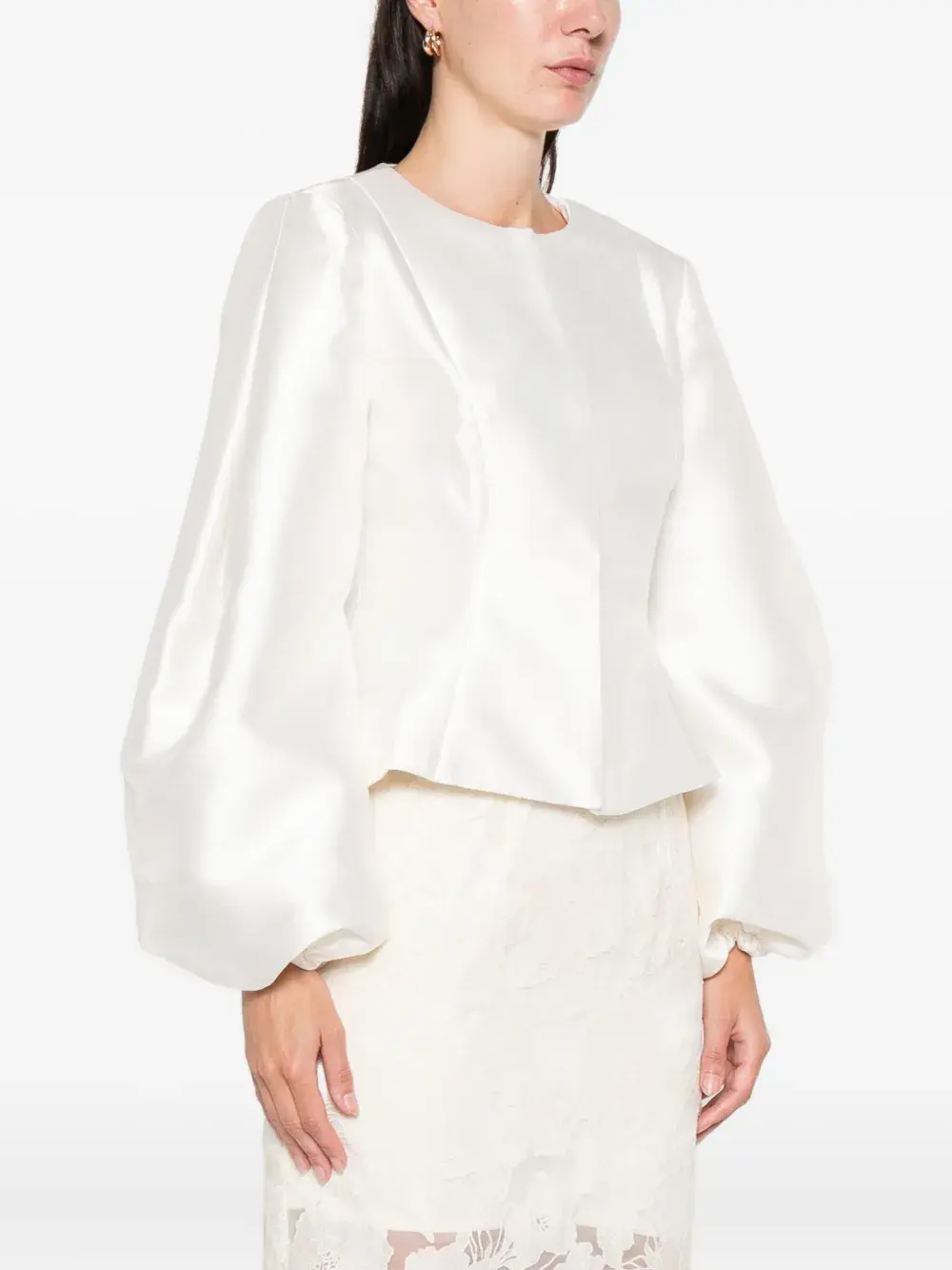 слоновая кость, круглый вырез, рукава-буфы, укороченный фасон, потайная застёжка-молния сзади