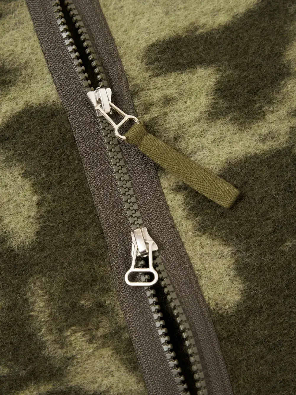 светло-зеленый с узором, застежка-молния, V-образный вырез, накладные карманы