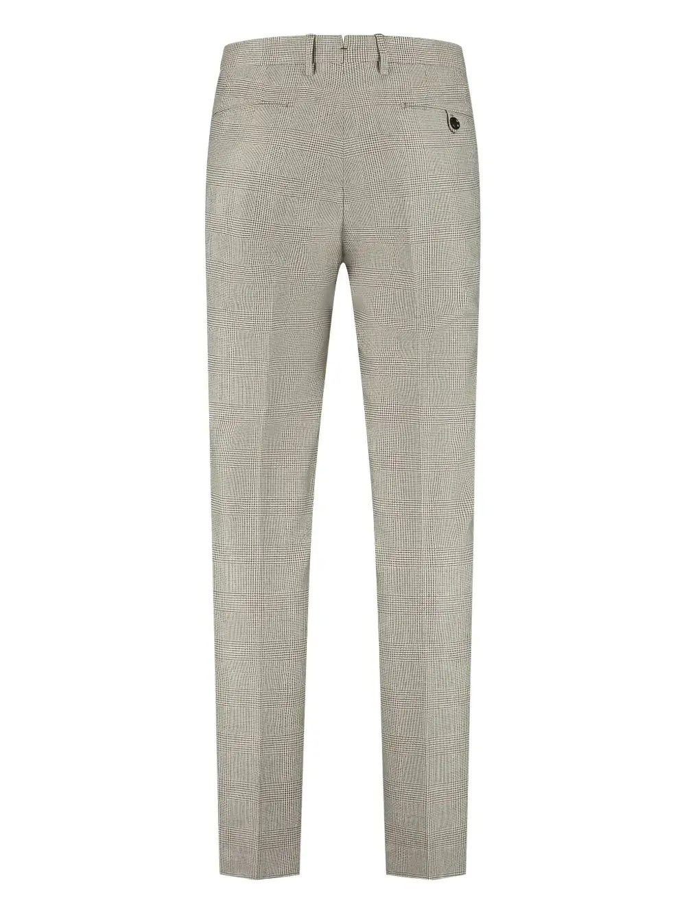 коричневый в клетку, застежка на пуговицы, шлевки для ремня, задние карманы