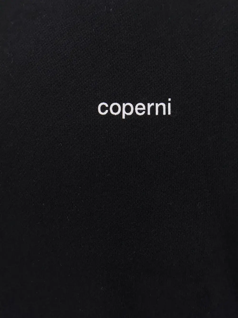 черная толстовка с принтом-логотипом, карманом-кенгуру, длинными рукавами и ребристыми манжетами