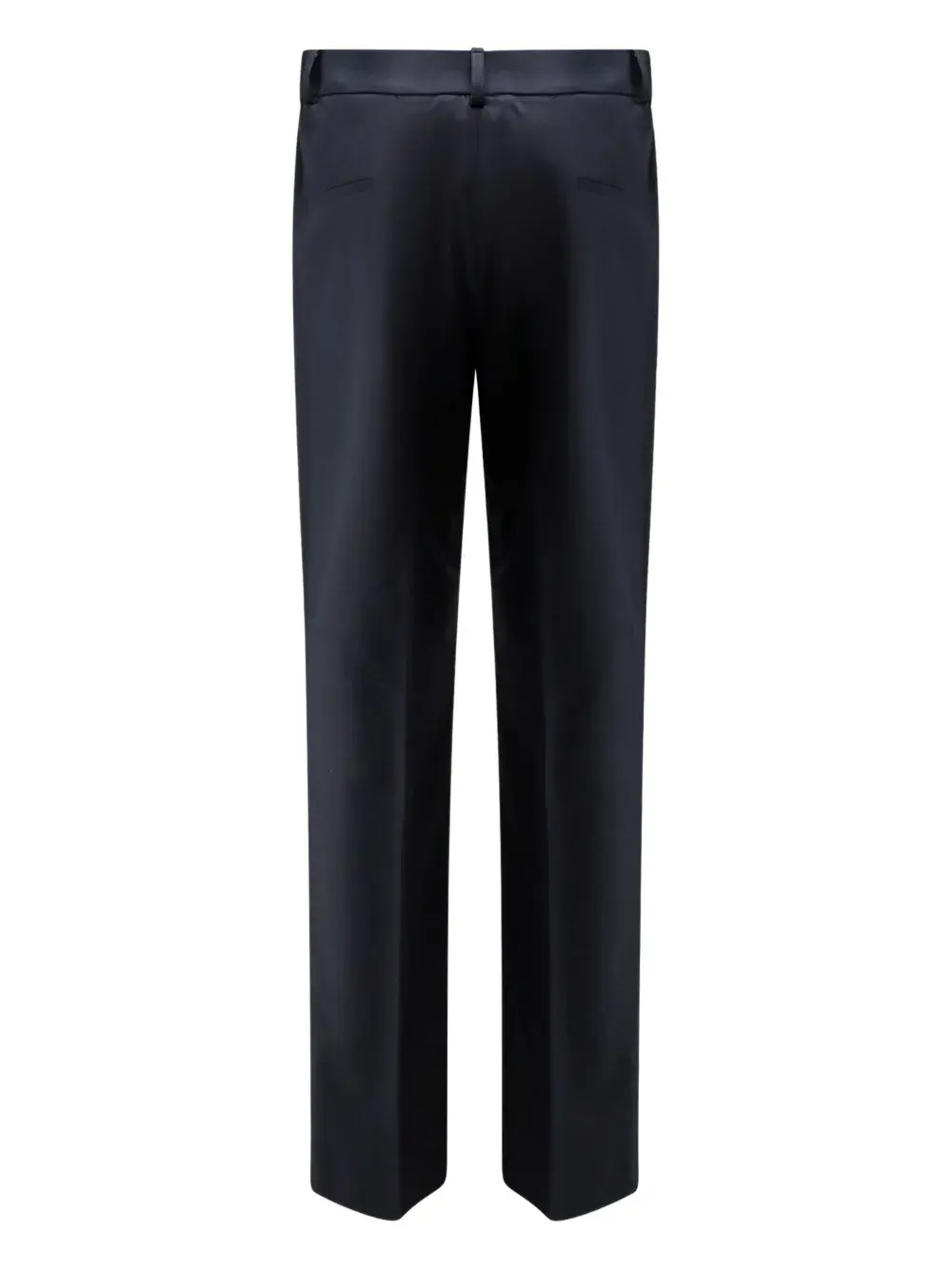 темно-синие, застежка на молнию и пуговицу, шлевки для ремня, задние прорезные карманы, складки спереди