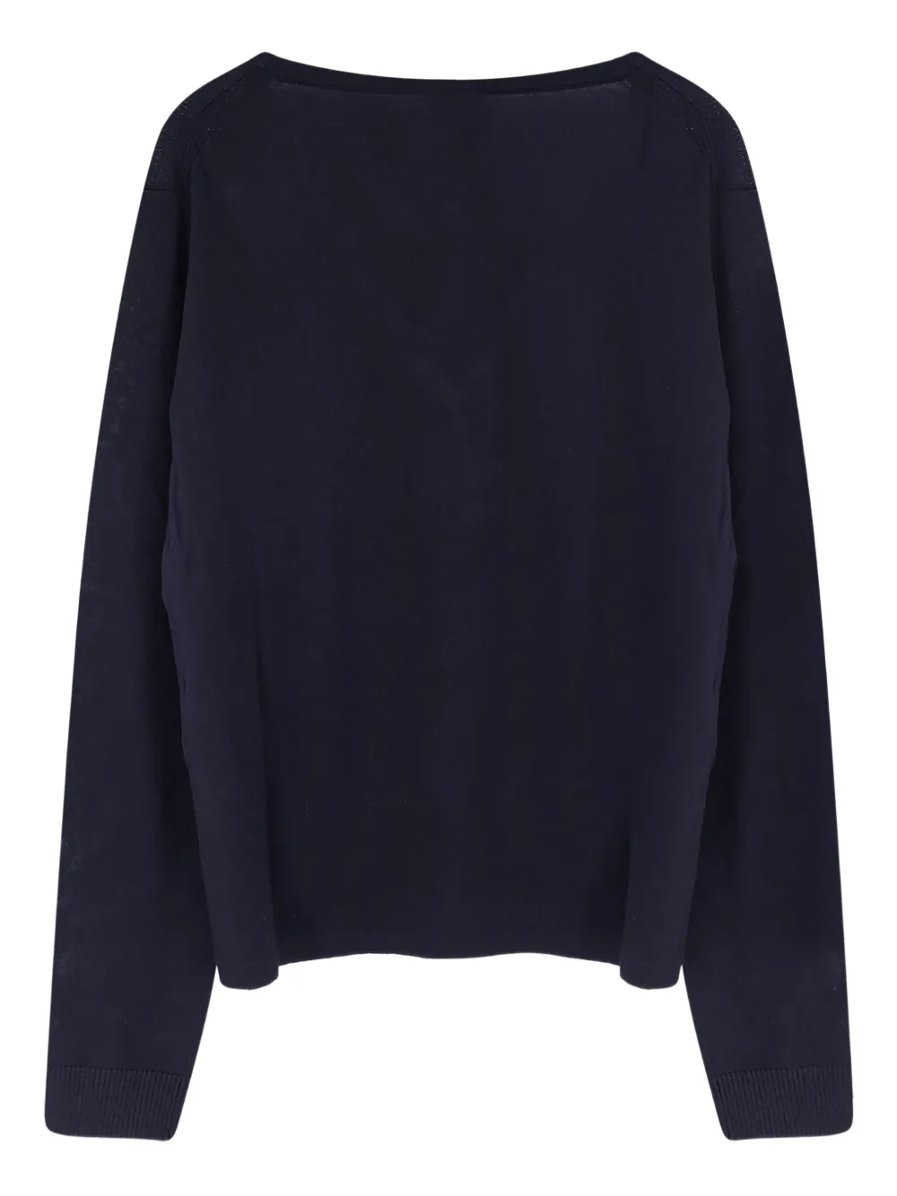 темно-синий, длинные рукава, V-образный вырез, ребристые манжеты