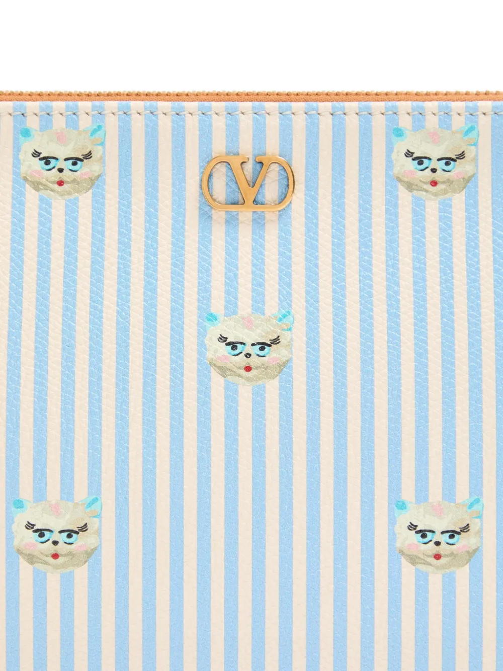 светло-голубой с полосками, принт "Кот из дома", фурнитура золотистого цвета, застежка-молния, три внутренних отделения для карт