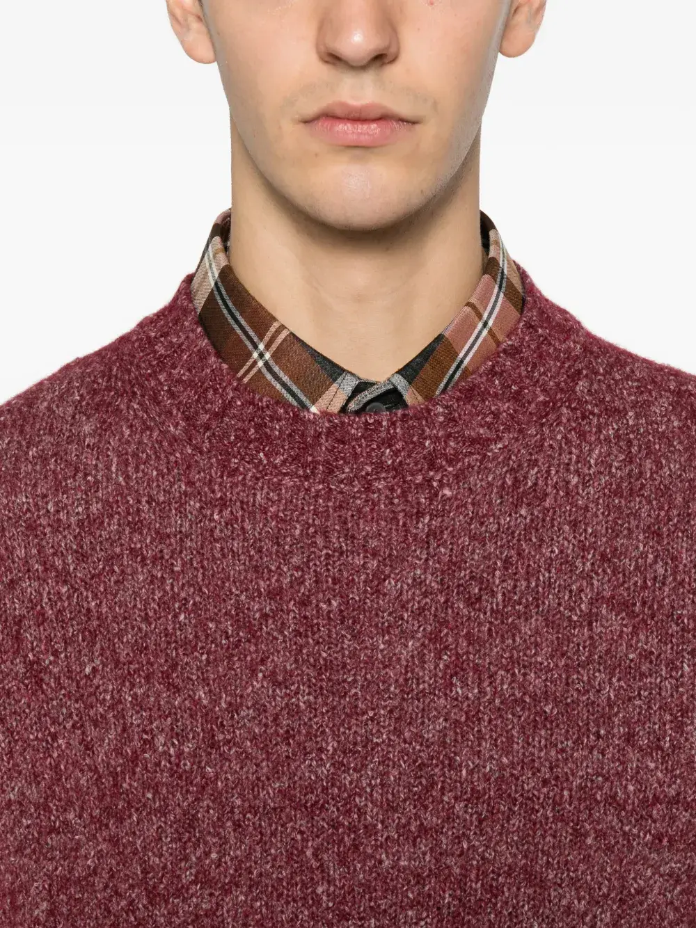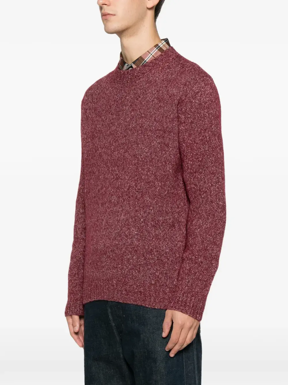 бордовый джемпер с круглым вырезом и длинными рукавами