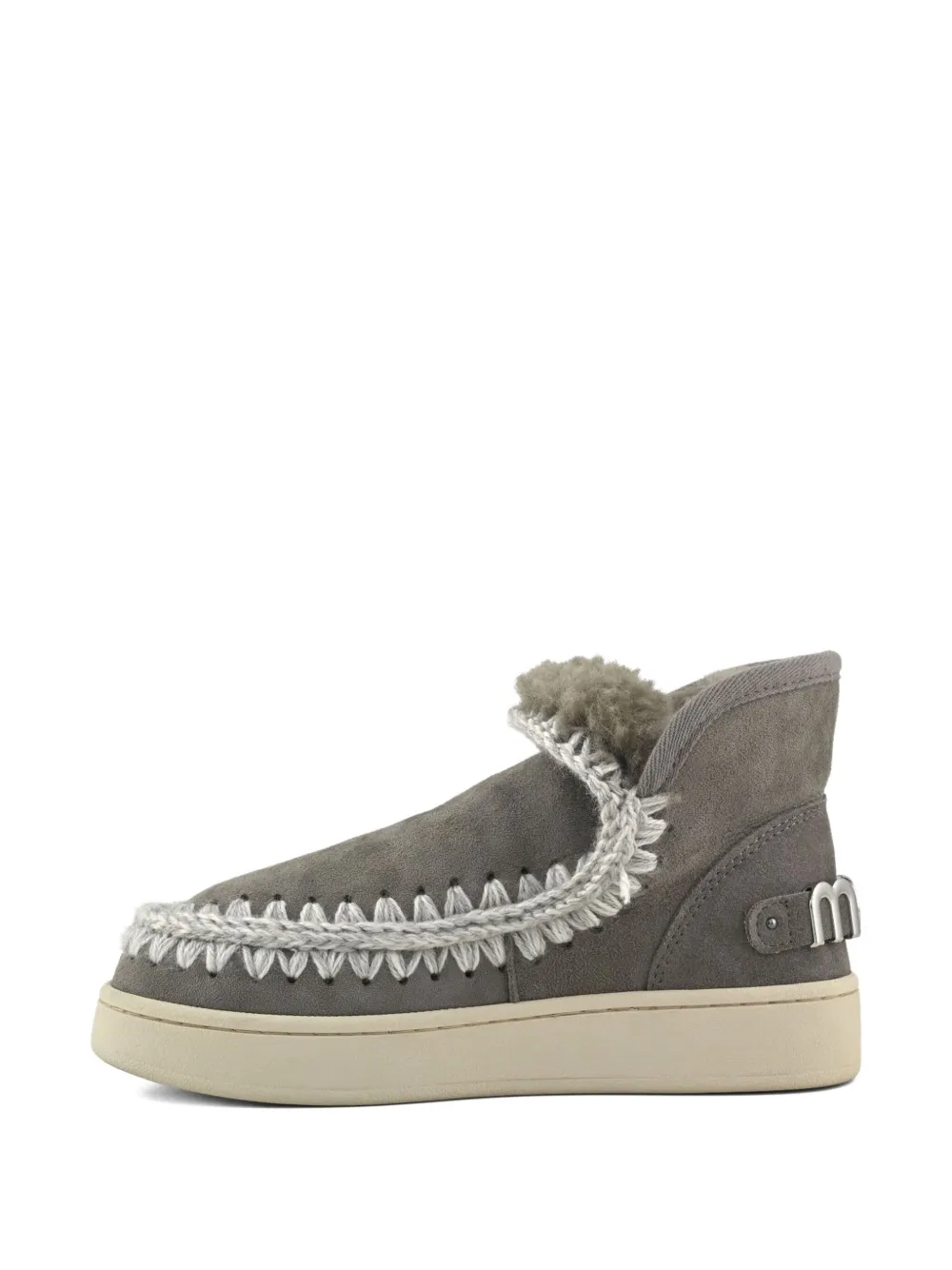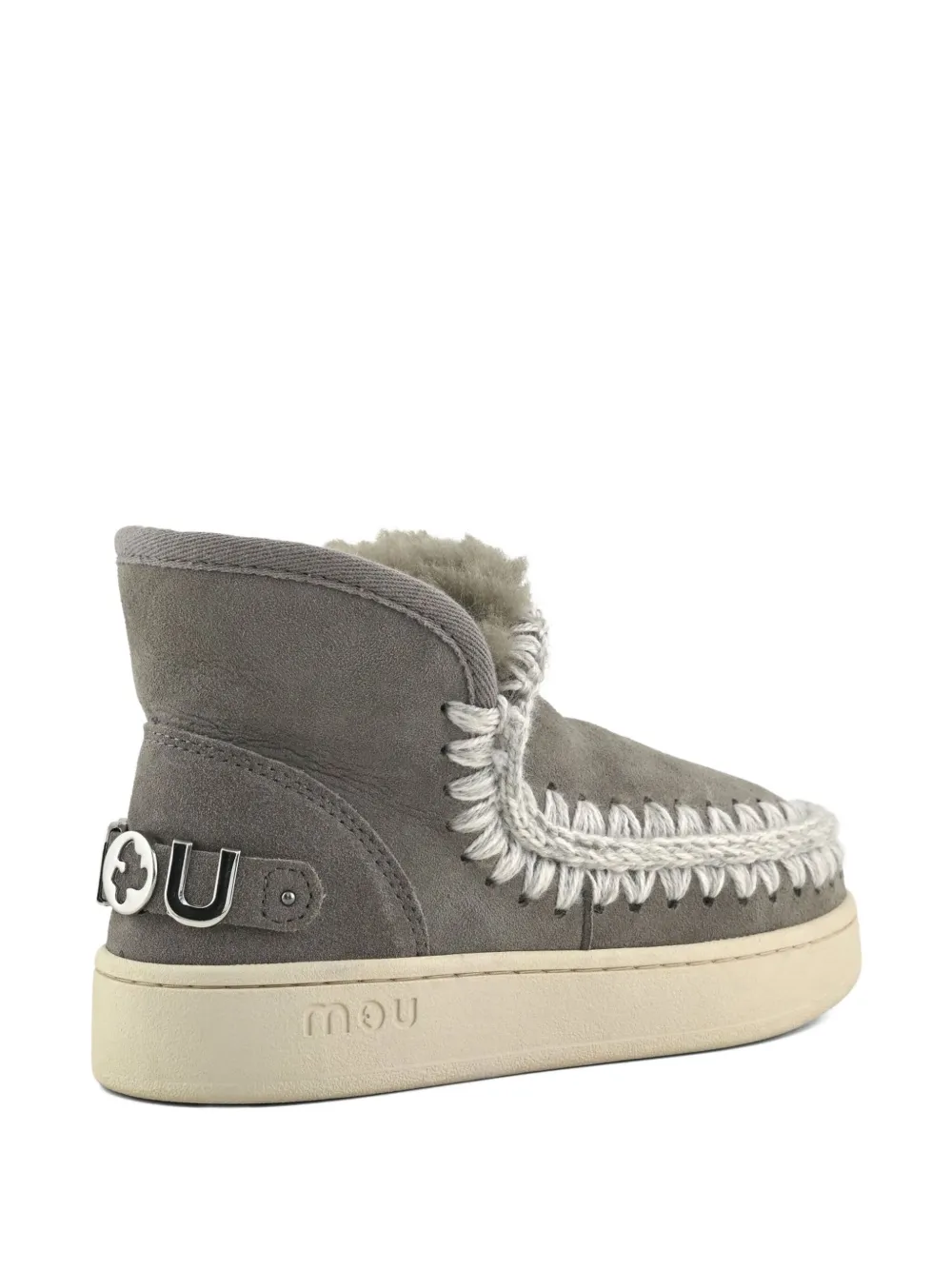 серый овчина, ручная вязка шерстяной строчкой, детали с логотипом, двухслойная резиновая подошва
