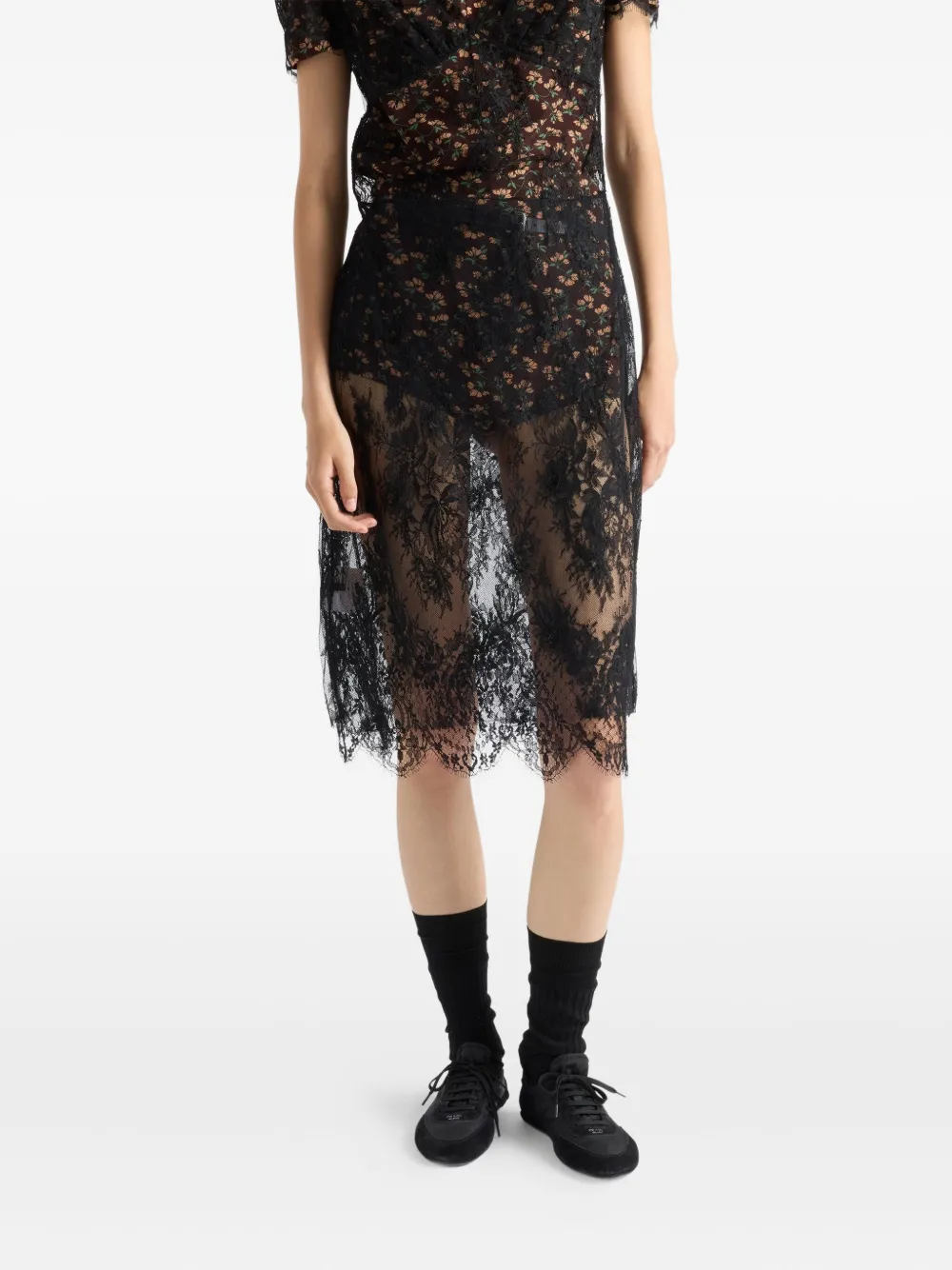 Мини-платье из кружева с зубчатым краем Prada, черный