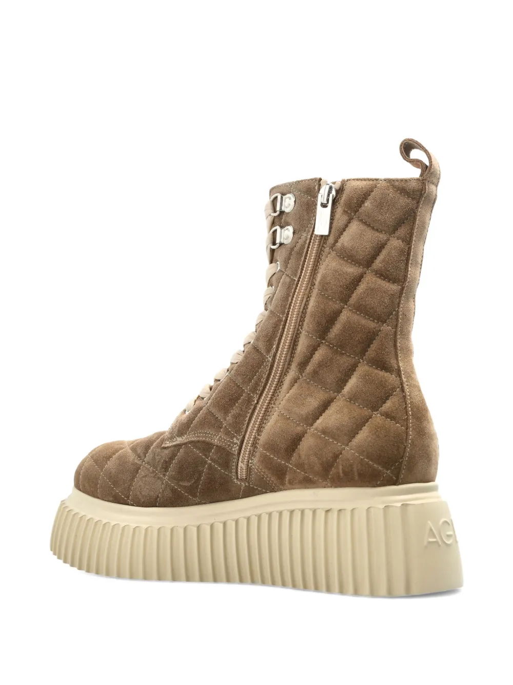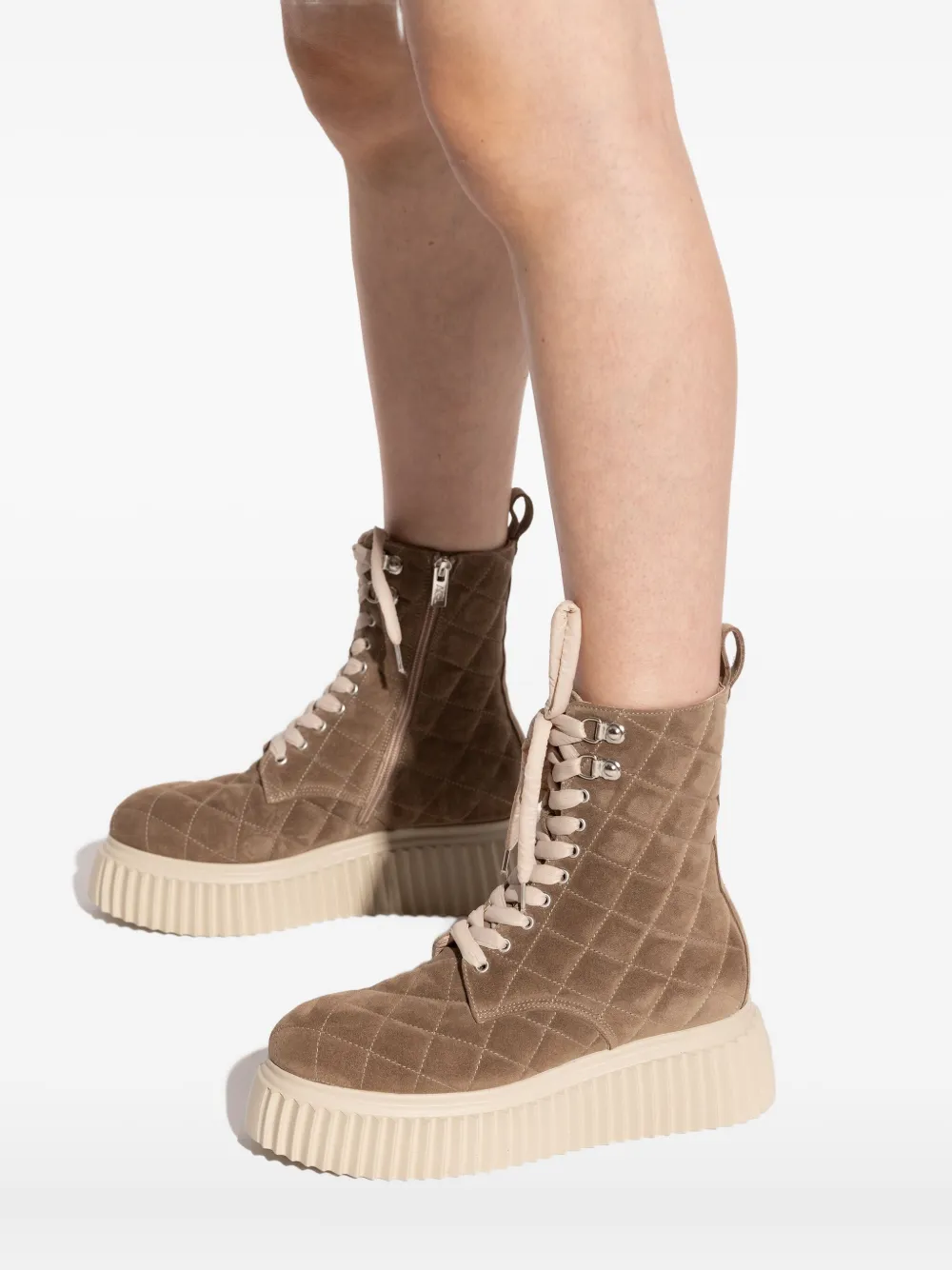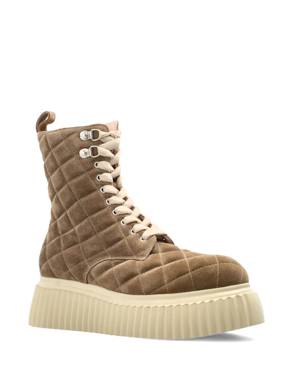 коричневый цвет, стёганый дизайн, боковая застёжка-молния, шнуровка спереди, рифлёная подошва, петля для вытягивания на верхней части