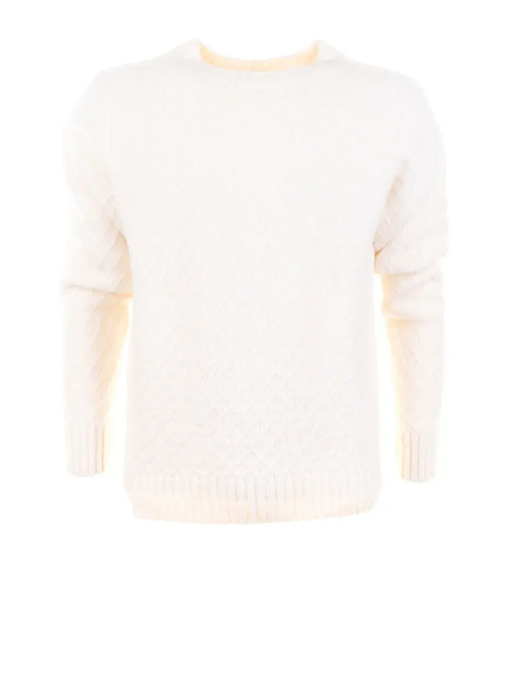 натурально-белый цвет, круглый вырез горловины, длинные рукава, ребристая отделка низа и манжет