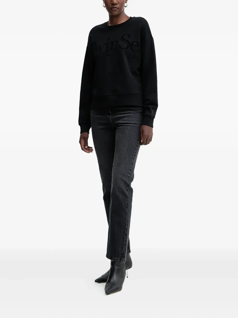 чёрная футболка с логотипом, круглым вырезом, длинными рукавами, эластичными манжетами и нижним краем