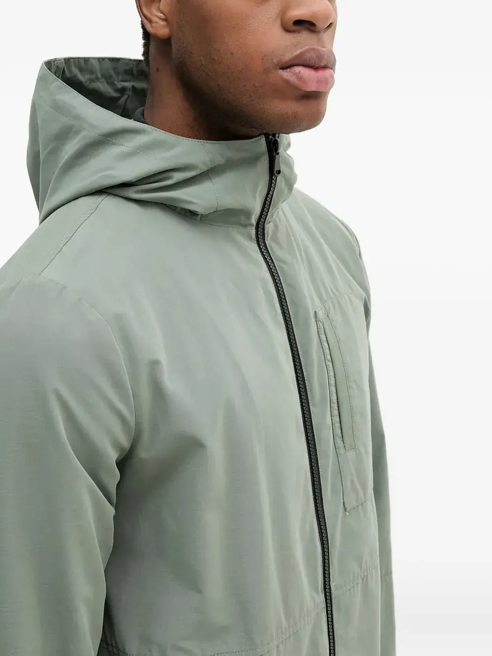 светло-зеленая классическая толстовка с капюшоном, застежкой-молнией, нагрудным карманом, длинными рукавами и панельным дизайном