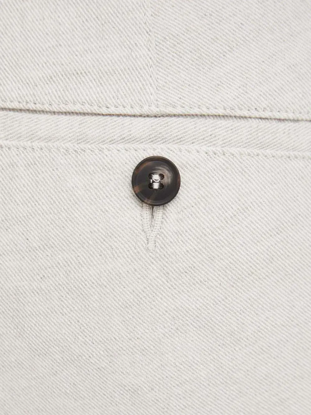 молочно-белый цвет, шлевки для ремня, застежка на пуговицу, задний карман, стандартный крой