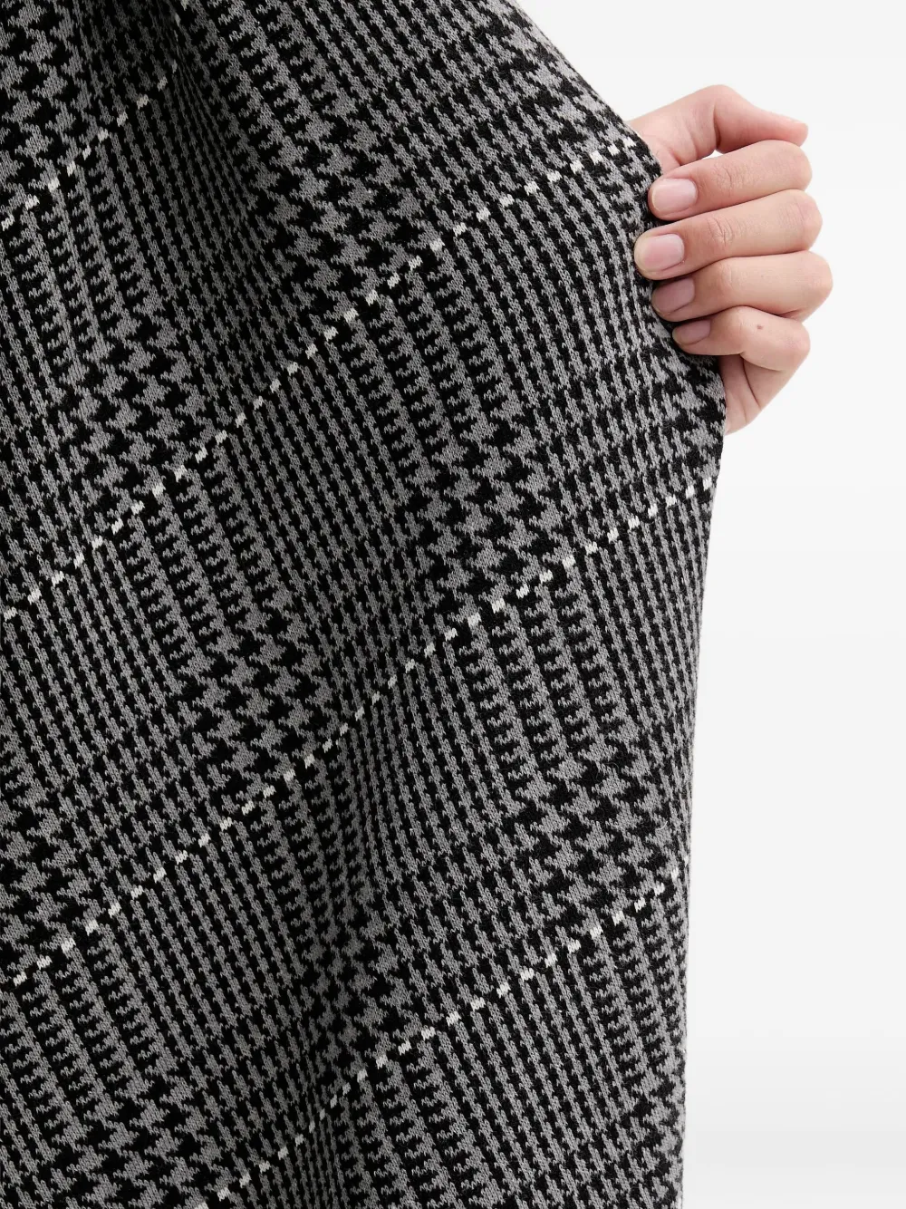 серый жакет с узором "гусиная лапка", открытый спереди, с асимметричным краем